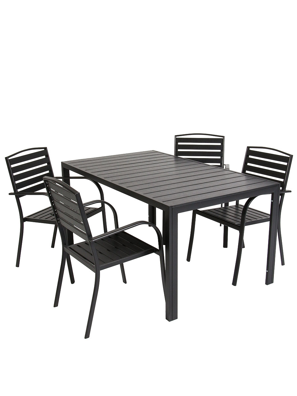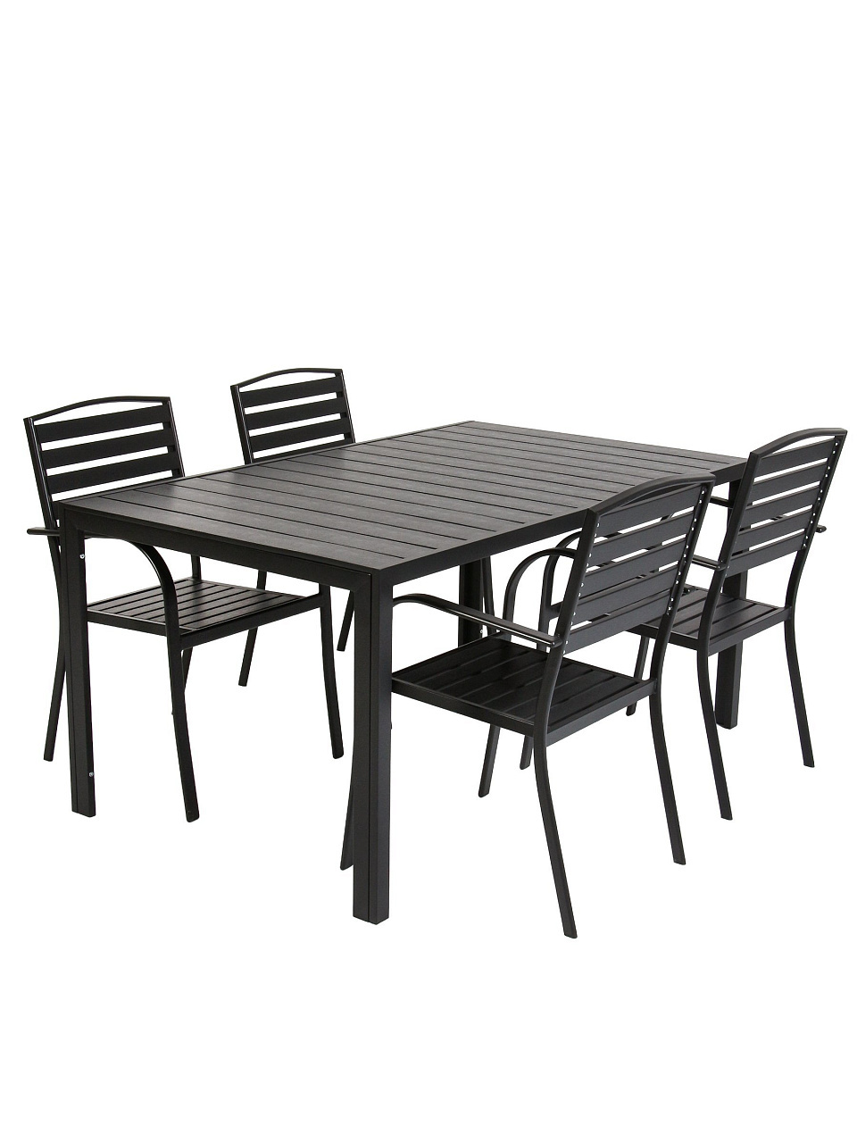 Садовый обеденный комплект 150х90 см: стильный металлический стол и 4 стула для дачи и кафе. Надежное решение для комфортного отдыха на улице.