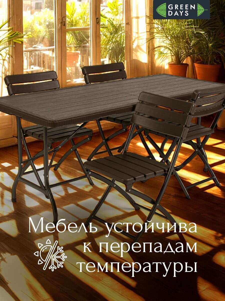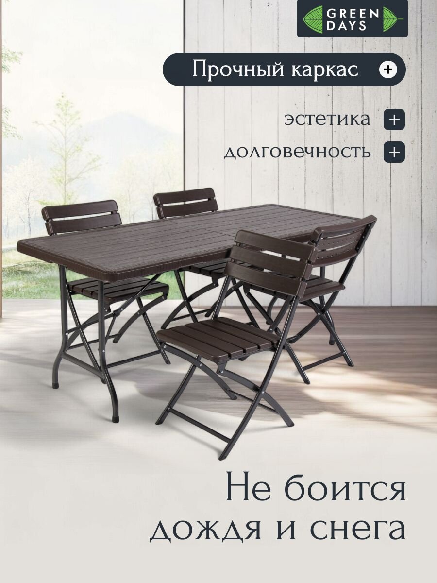 Вы можете приобрести «Мебель садовая Green Days, Уют, коричневая, стол, 180х75х74 см, 4 стула, 100 кг, MZK-180+YC-043 SET (1+4)» и другие товары в нашем интернет-магазине в Ельце по низким ценам и с бесплатным самовывозом.