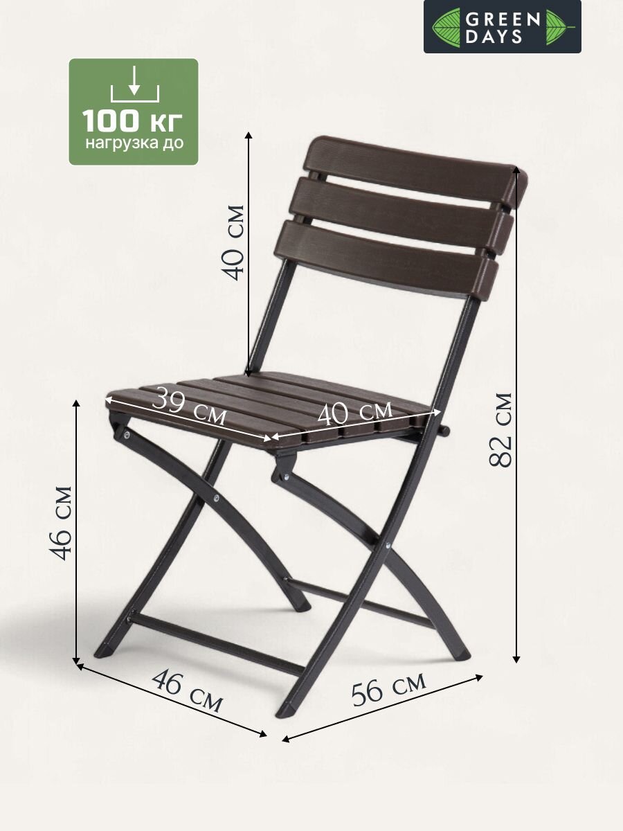 - Высота стула в сложенном виде: 98 см;