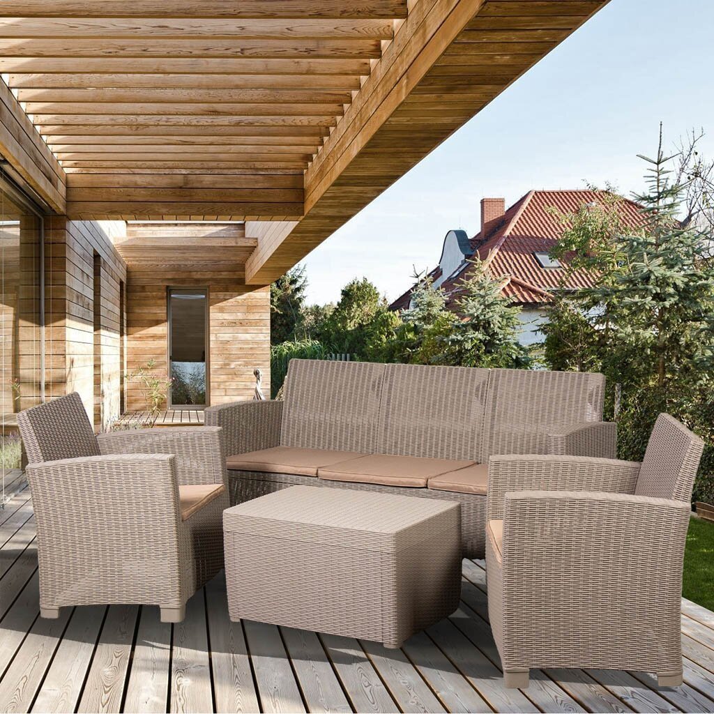 Фактура поверхности, имитирующая натуральное ротанговое плетение, повышает эстетическую ценность продукта. Мебель легко содержать в чистоте, она проста в монтаже и устойчива к действию неблагоприятных погодных условий.