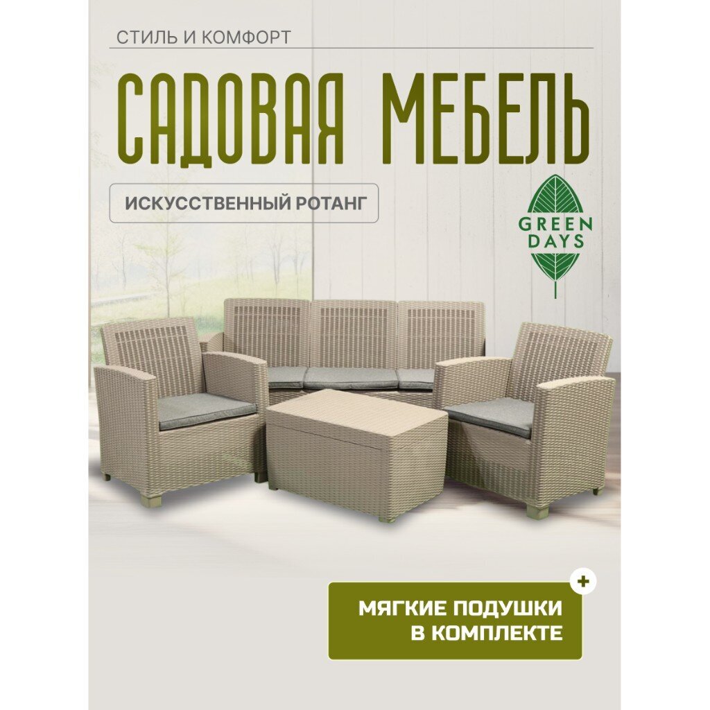 Вы можете приобрести «Мебель садовая Green Days, Эви Грей, серая, стол, 76.5х52х42 см, 2 кресла, 1 диван, подушка серая, 120 кг, 175х70х78 см, 1806136CB» и другие товары в нашем интернет-магазине в Старом Осколе по низким ценам и с бесплатным самовывозом.