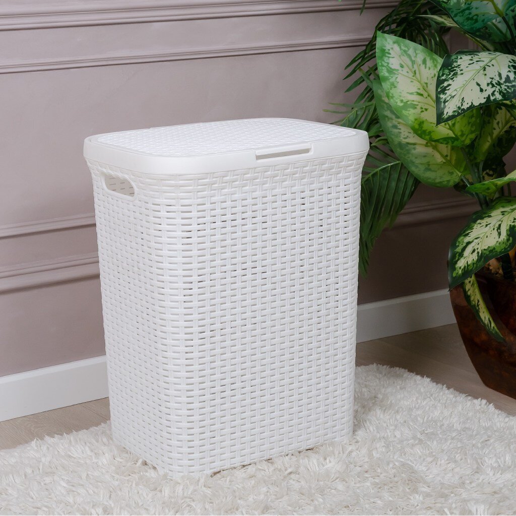 Корзина для белья, 60 л, прямоугольная, плетеная, пластик, белая, Violet, Ротанг, 1860/6/186006