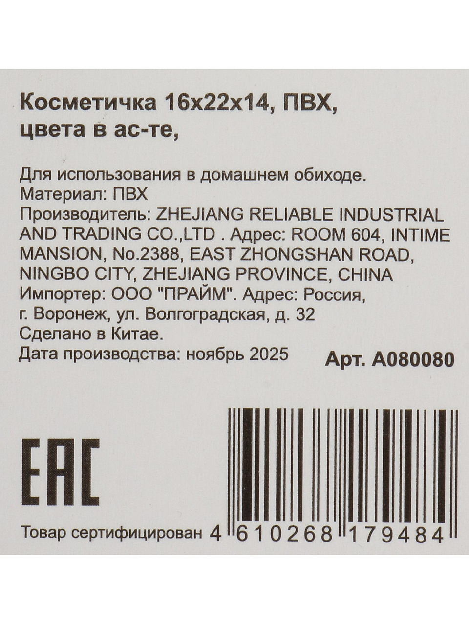 Косметичка 16х22х14 см, A080080, прямоугольная, застежка молния, в ассортименте