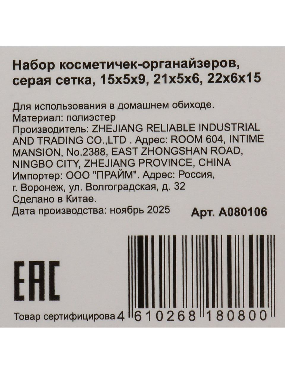 - Универсальность: три косметички разного размера (15х5х9 см, 21х5х6 см, 22х6х15 см) — для любых нужд и сценариев.
