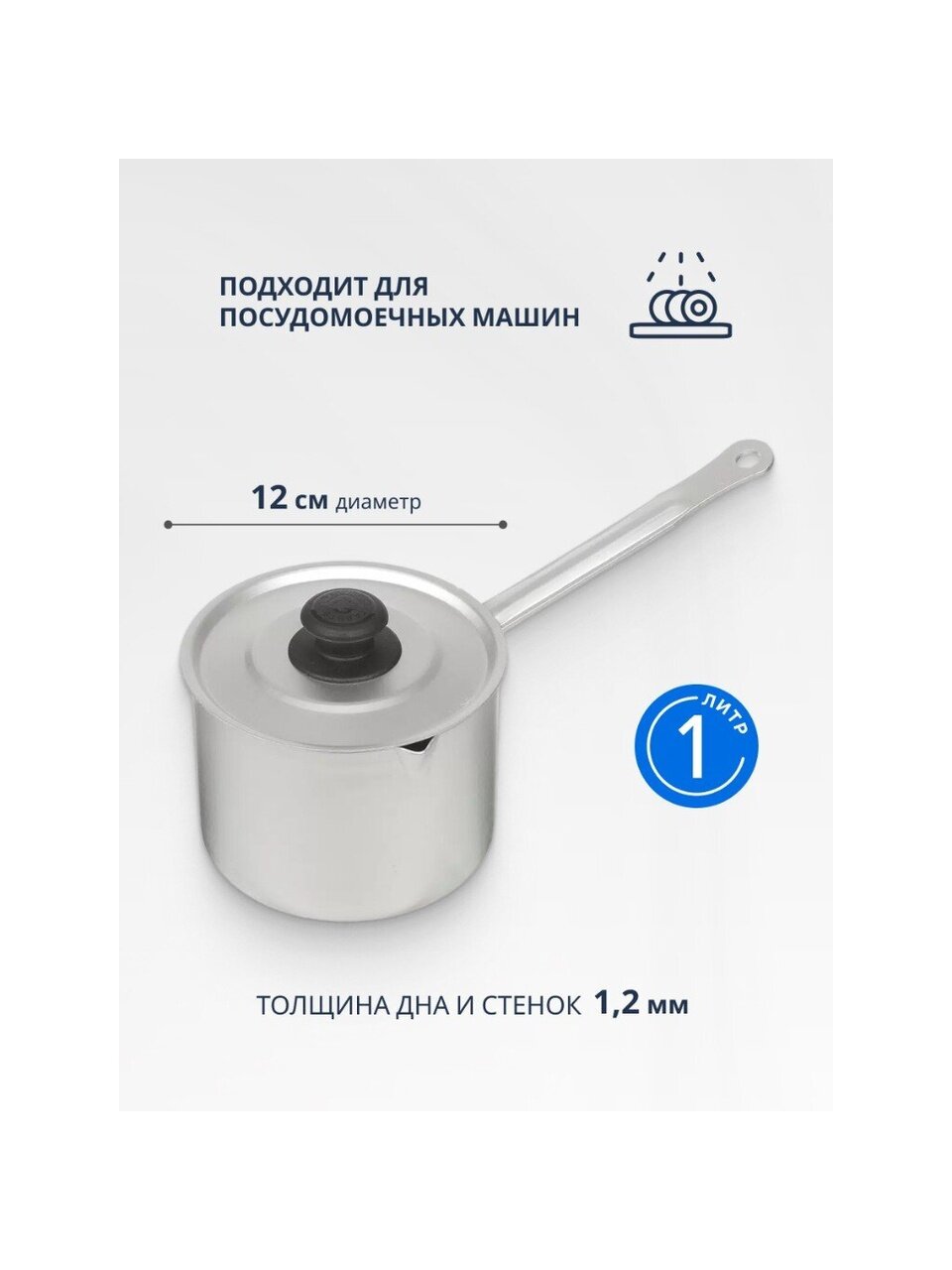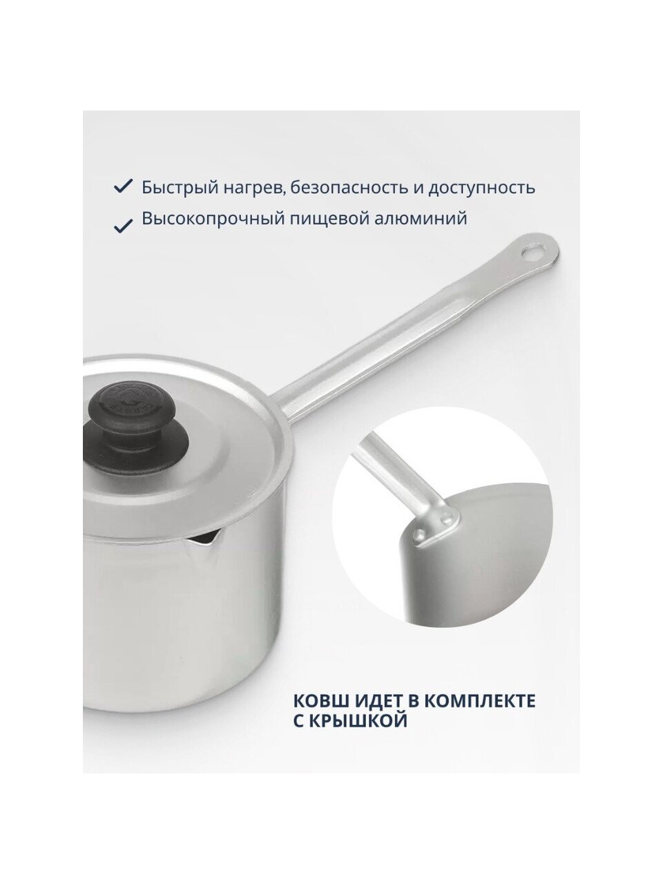 Алюминиевая кастрюля-ковш Калитва 1 л, с металлической ручкой - это универсальная посуда для приготовления различных блюд.