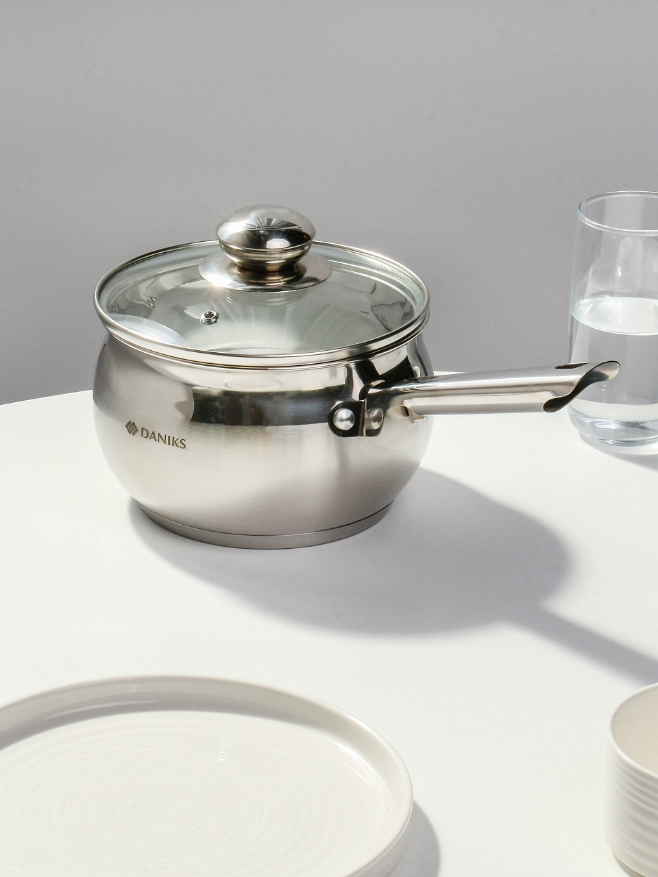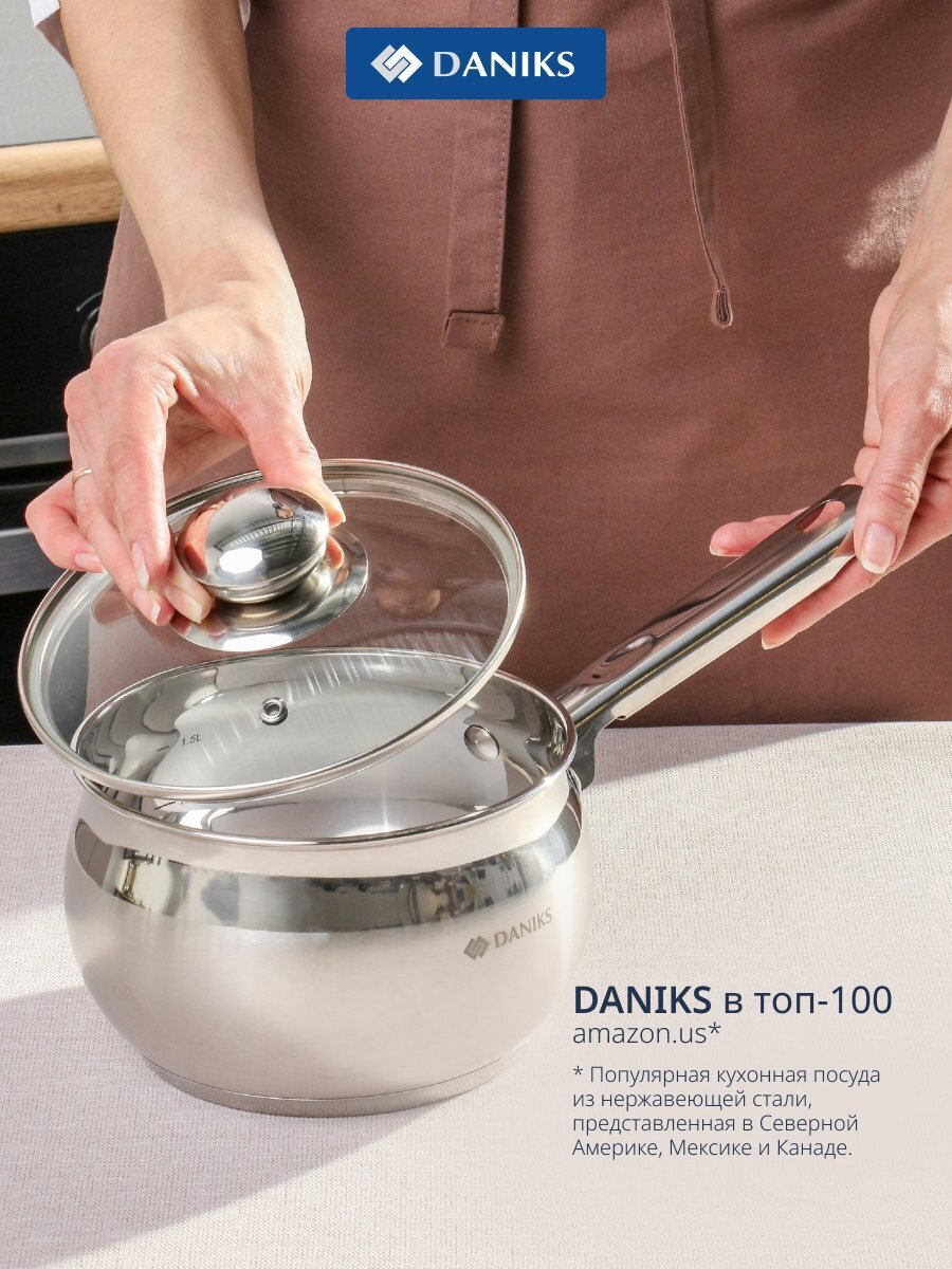 Ковш Daniks Классика 1.9 л из нержавеющей стали: оптимальный выбор для дома и дачи, подходит для всех плит, включая индукцию. Прозрачная крышка, мерная шкала и долговечная ручка — всё для вашего комфорта.