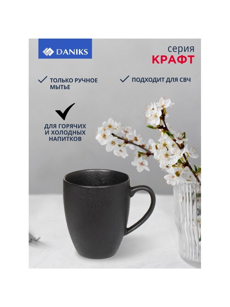 Керамическая кружка Daniks Крафт 350 мл — стильный выбор для дома и офиса: универсальный объем, трендовый черный, подходит для СВЧ, без переплат.