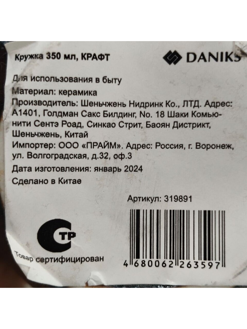 Закажите керамическую кружку Daniks Крафт 350 мл по выгодной цене — получите стиль и удобство с гарантией качества. Быстрая доставка и проверенный бренд — ваш выбор для ежедневного комфорта.
