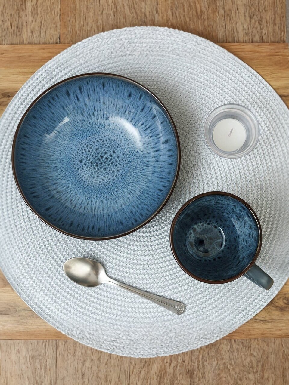 - Современный синий дизайн и универсальный объем 360 мл — удобно для чая, кофе, какао.