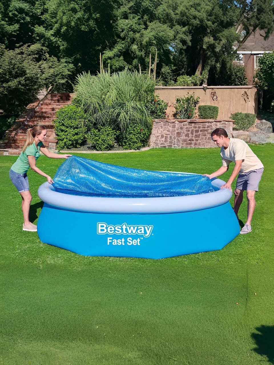 Тент Bestway 58241 не только сохраняет чистоту воды, но и значительно снижает затраты на подогрев бассейна, что делает его экономически выгодным приобретением. Защита от загрязнений и уменьшение испарения воды позволят вам наслаждаться плаванием без лишних забот. Купите это покрывало и ощутите все преимущества продуманного подхода к уходу за бассейном. Сделайте отдых на воде комфортным и приятным!