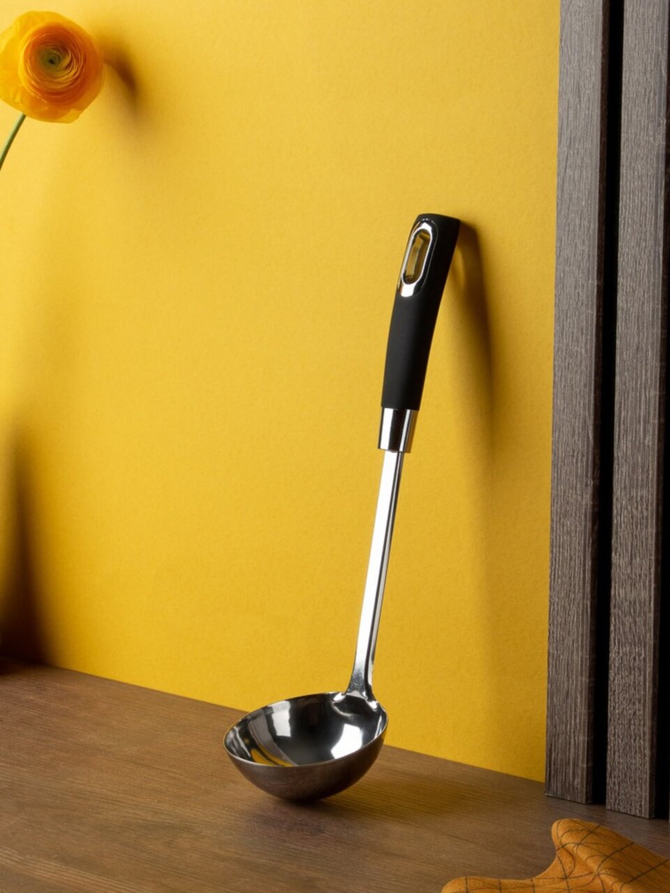Навеска позволяет хранить половник на крючке, экономя место и обеспечивая быстрый доступ при готовке на кухне или на даче.