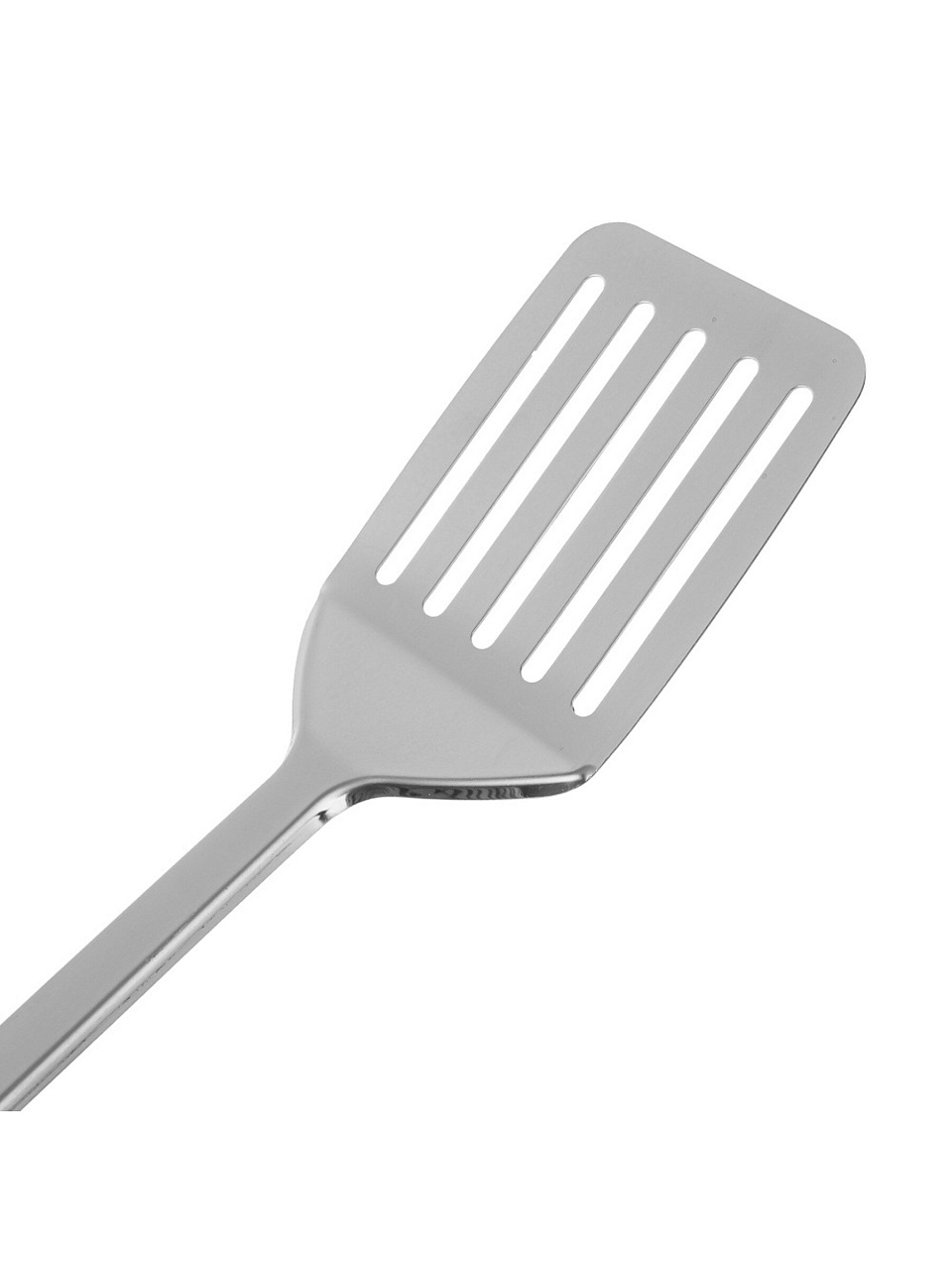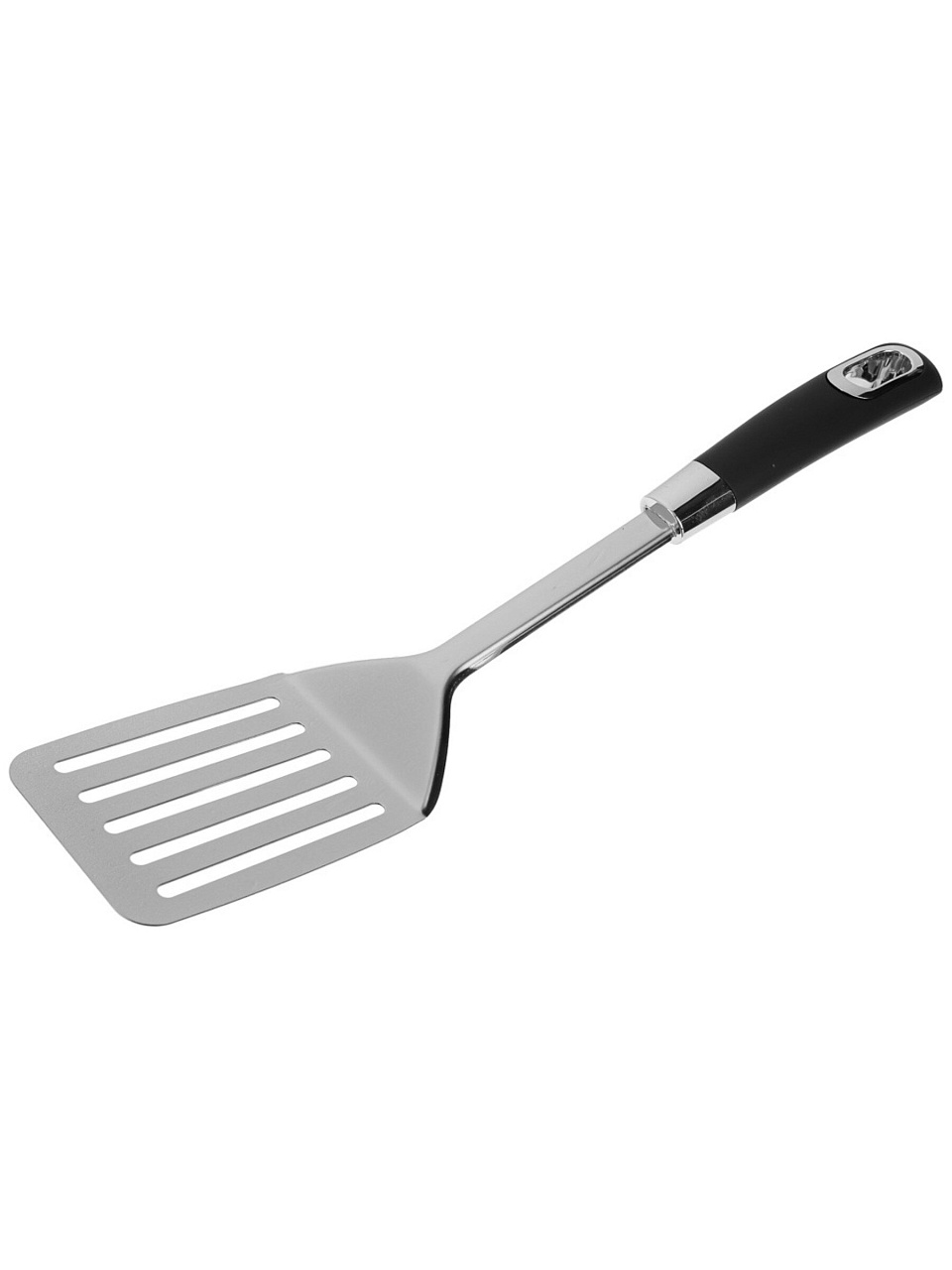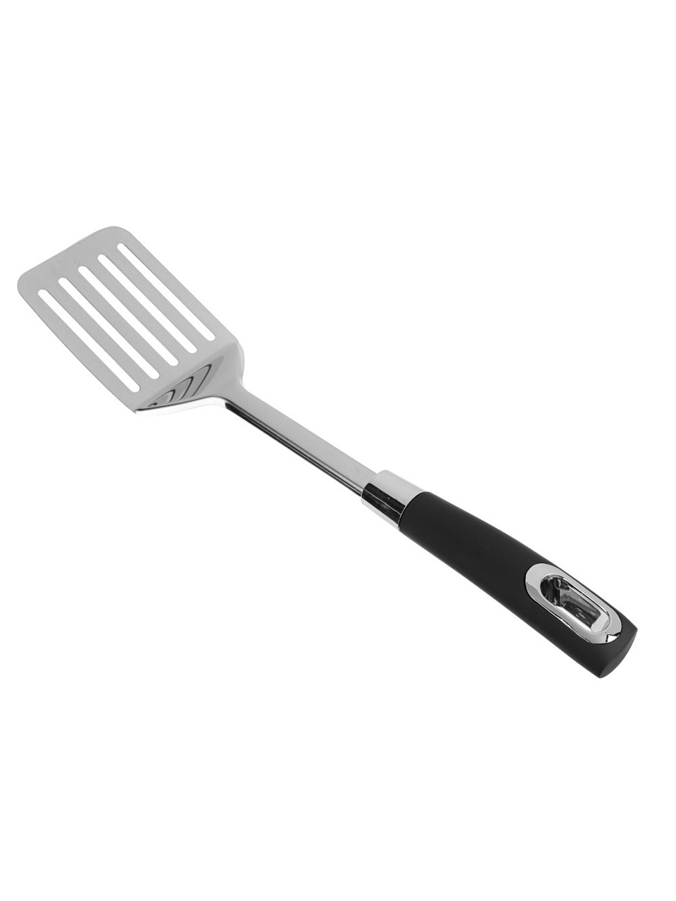 Обратите внимание на длину (35.5 см), материал (нержавеющая сталь), наличие прорезей для слива масла и эргономичную ручку. Эта модель универсальна для большинства сковород и блюд.