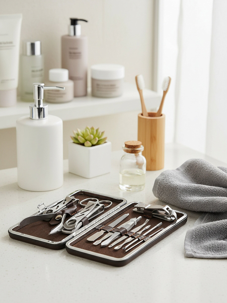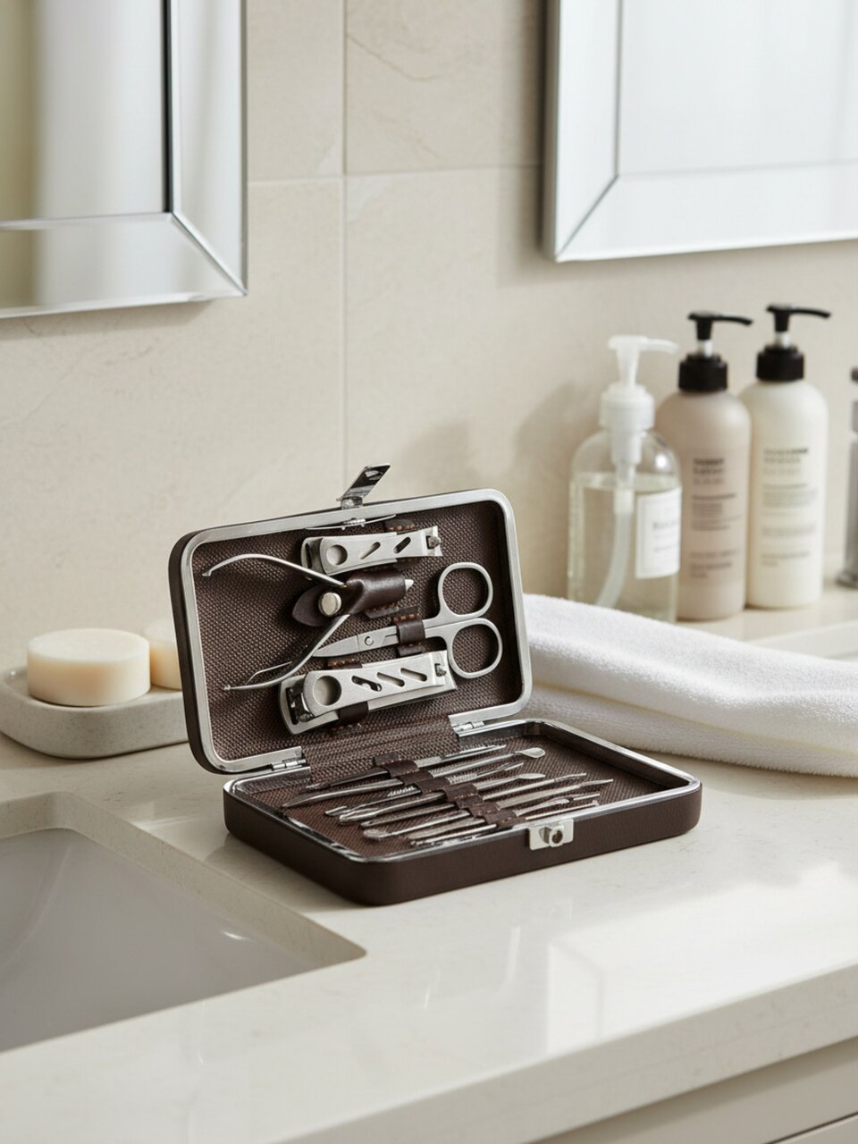 Компактный размер и прочный футляр позволяют брать набор с собой, не занимая много места. Инструменты легко дезинфицируются, подходят для быстрого ухода вне дома.