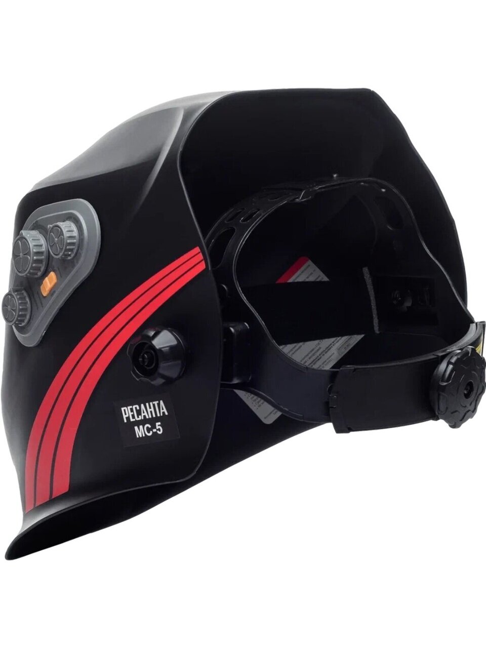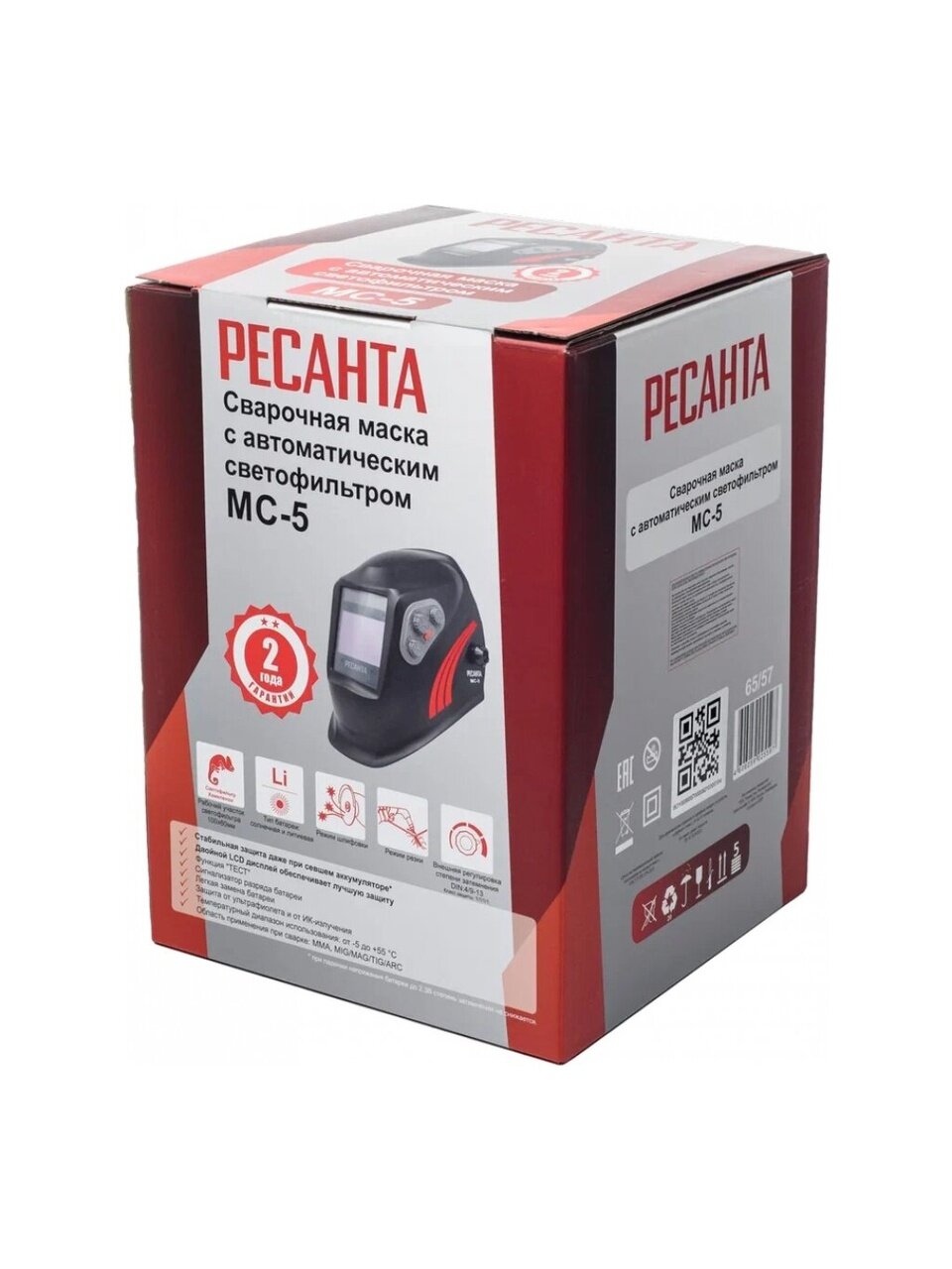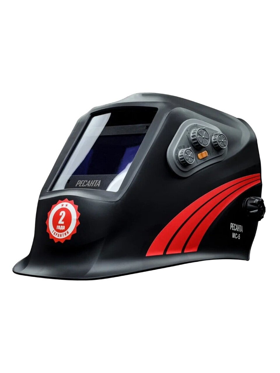 Сварочная маска РЕСАНТА МС-5 предназначена для защиты глаз от видимого, ультрафиолетового и инфракрасного излучения, а также для защиты головы и шеи от попадания искр при сварочных работах. Маска данного типа удобна, поскольку светофильтр автоматически затемняется при зажигании дуги. Такой светофильтр назвали «хамелеоном» из-за способности автоматически затемняться. Степень затемнения можно настраивать с помощью встроенного регулятора в зависимости от модели маски.