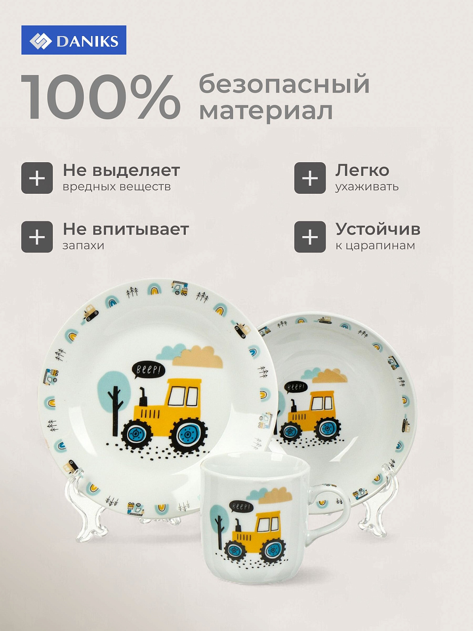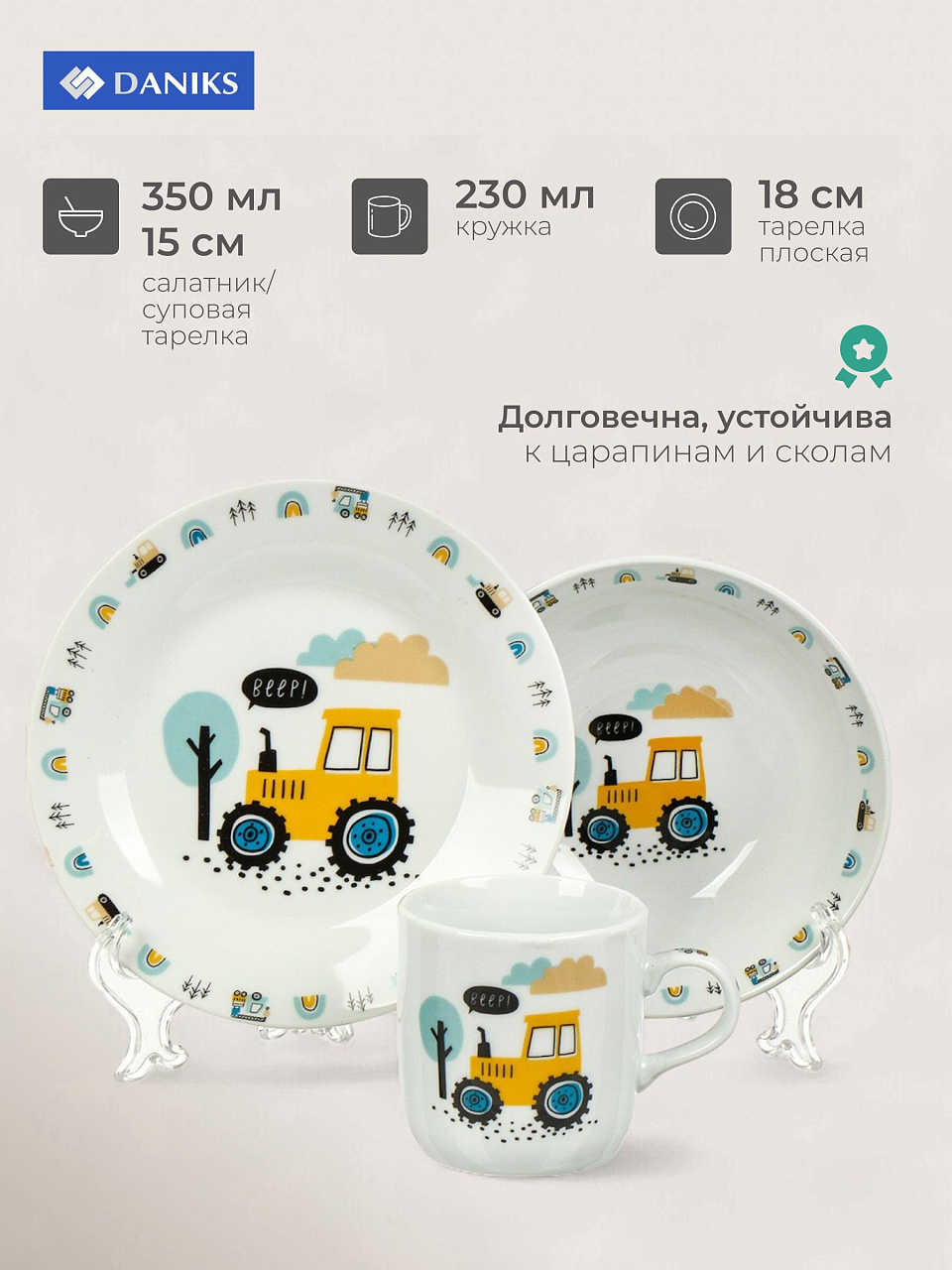 Вы можете приобрести «Набор посуды керамика, 3 шт, Трактор, тарелка 17.5/18 см, салатник 15 см, кружка 230 мл, Daniks» и другие товары в нашем интернет-магазине в Казани по низким ценам и с бесплатным самовывозом.