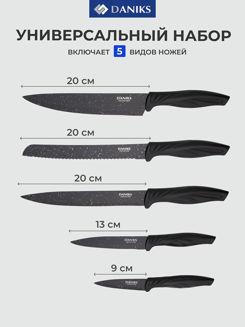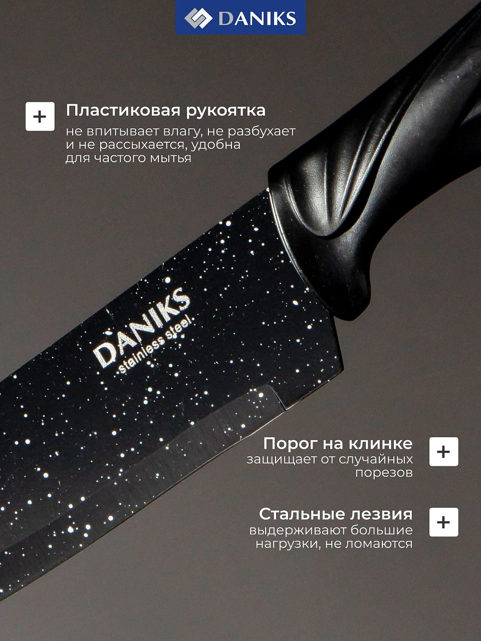 Покупка набора ножей Daniks YW-A349-PB — это уверенность в удобстве и безопасности на кухне, стильное оформление пространства и экономия времени при приготовлении блюд. Такой комплект станет надежным помощником каждый день, делая процесс готовки более приятным и эффективным.
