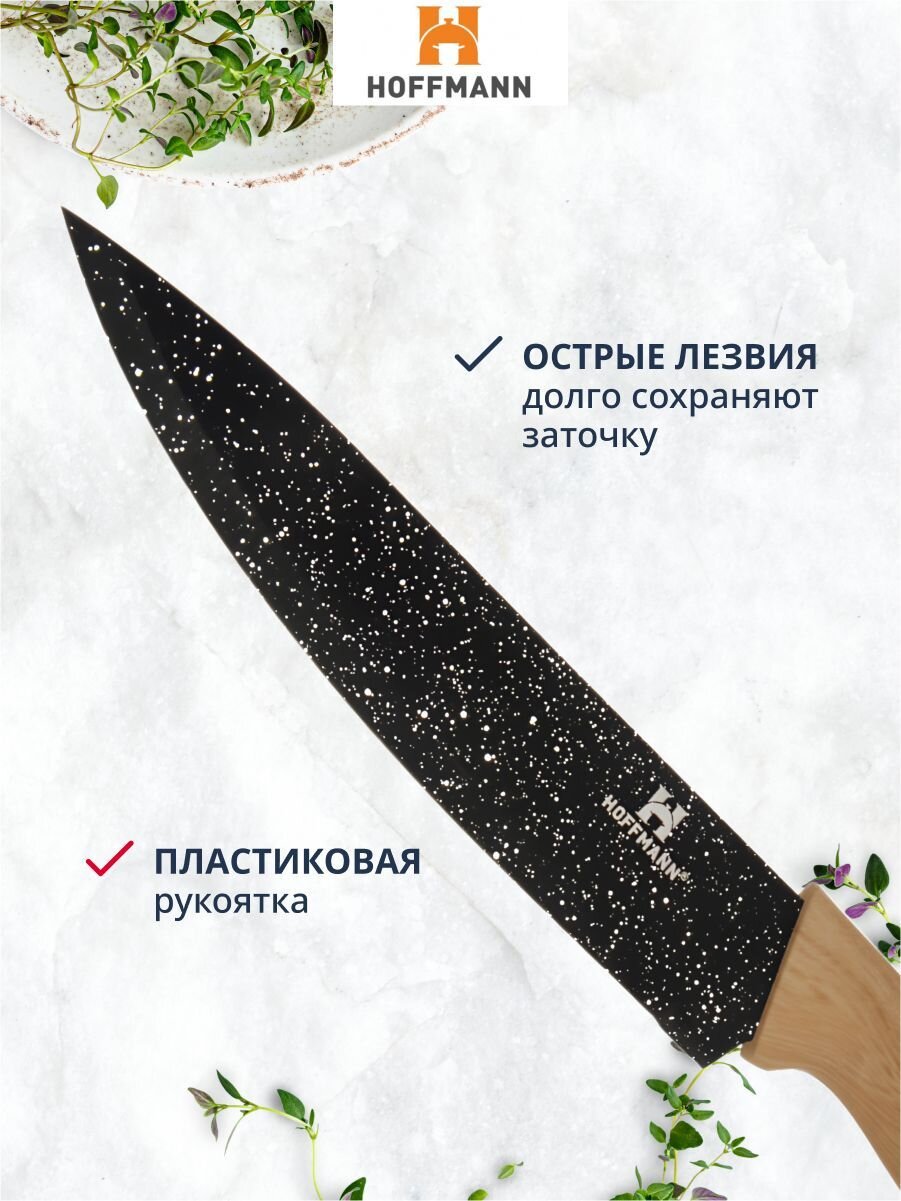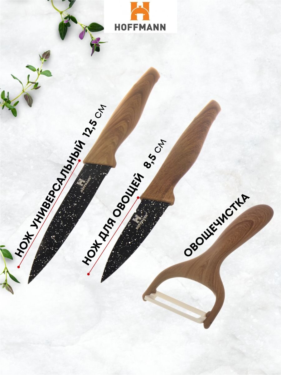 Покупая набор ножей Hoffmann НМ 6644, приобретается не только практичный инструмент для кухни, но и уверенность в качестве и удобстве приготовления пищи. Такой комплект помогает экономить время, делает процесс готовки приятным и безопасным, а современный дизайн гармонично вписывается в любой интерьер. Надежные ножи Hoffmann — залог идеального результата на кухне каждый день!