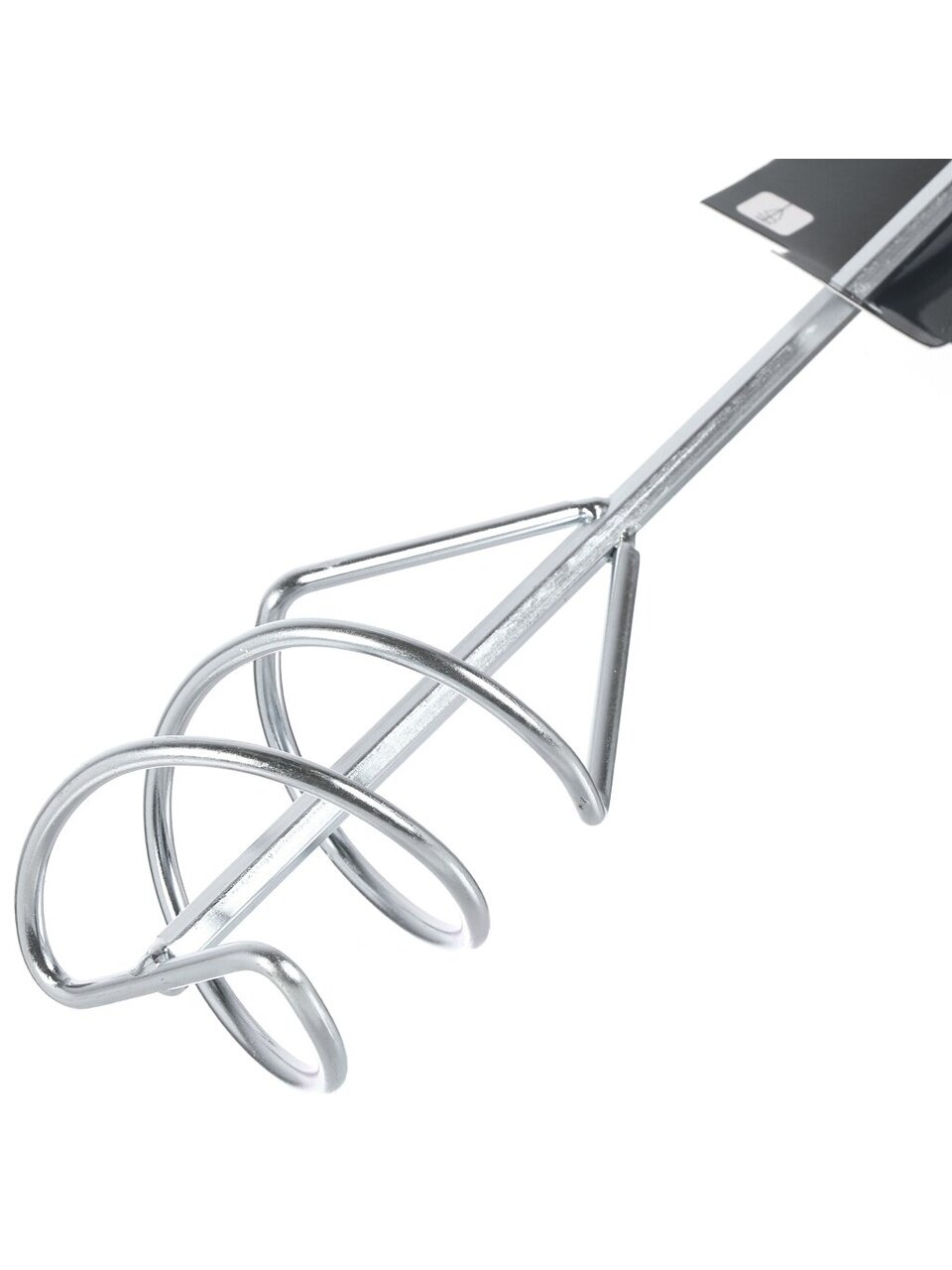 Насадка имеет усиленные лопасти с круглым сечением и применяется для перемешивания лакокрасочных материалов и строительных смесей. Она может быть использована со строительным миксером либо с дрелью.
