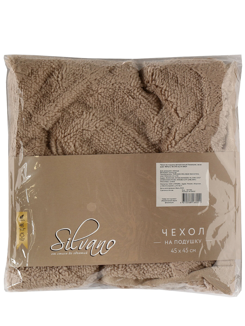 - Размер 45х45 см, износостойкий 100% полиэстер, скрытая молния — практично, долговечно, удобно надевать.