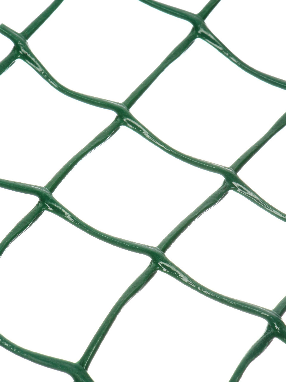 Полиэтиленовая сетка «Профи» легче, не ржавеет под дождем и не травмирует стебли растений при контакте. Её проще монтировать, а зеленый цвет делает ограждение практически невидимым в саду.