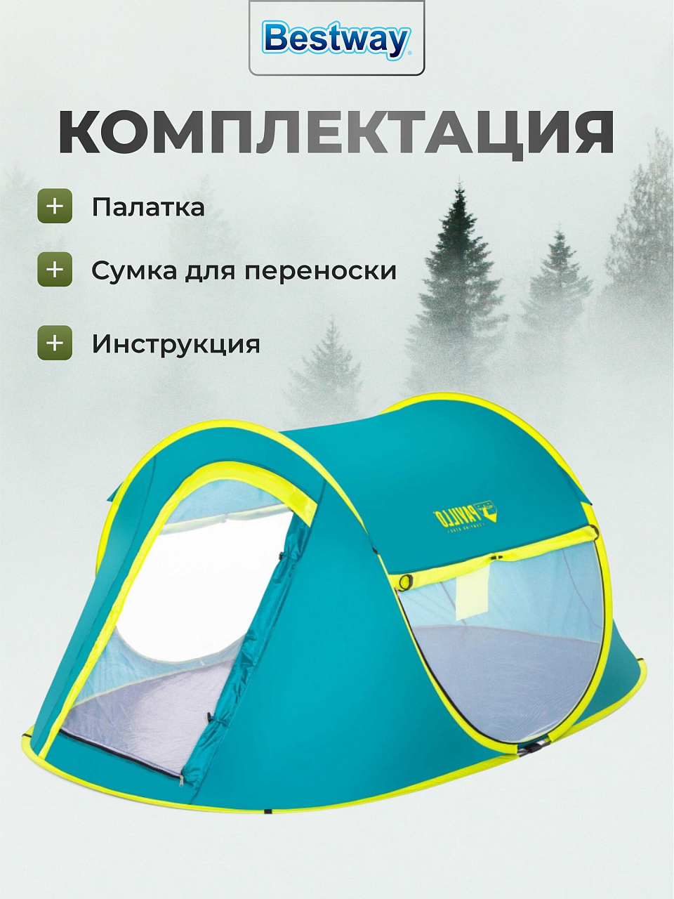 - Материал палатки водонепроницаемый полиэстер, дно выполнено из структурированного армированного полиэтилена.