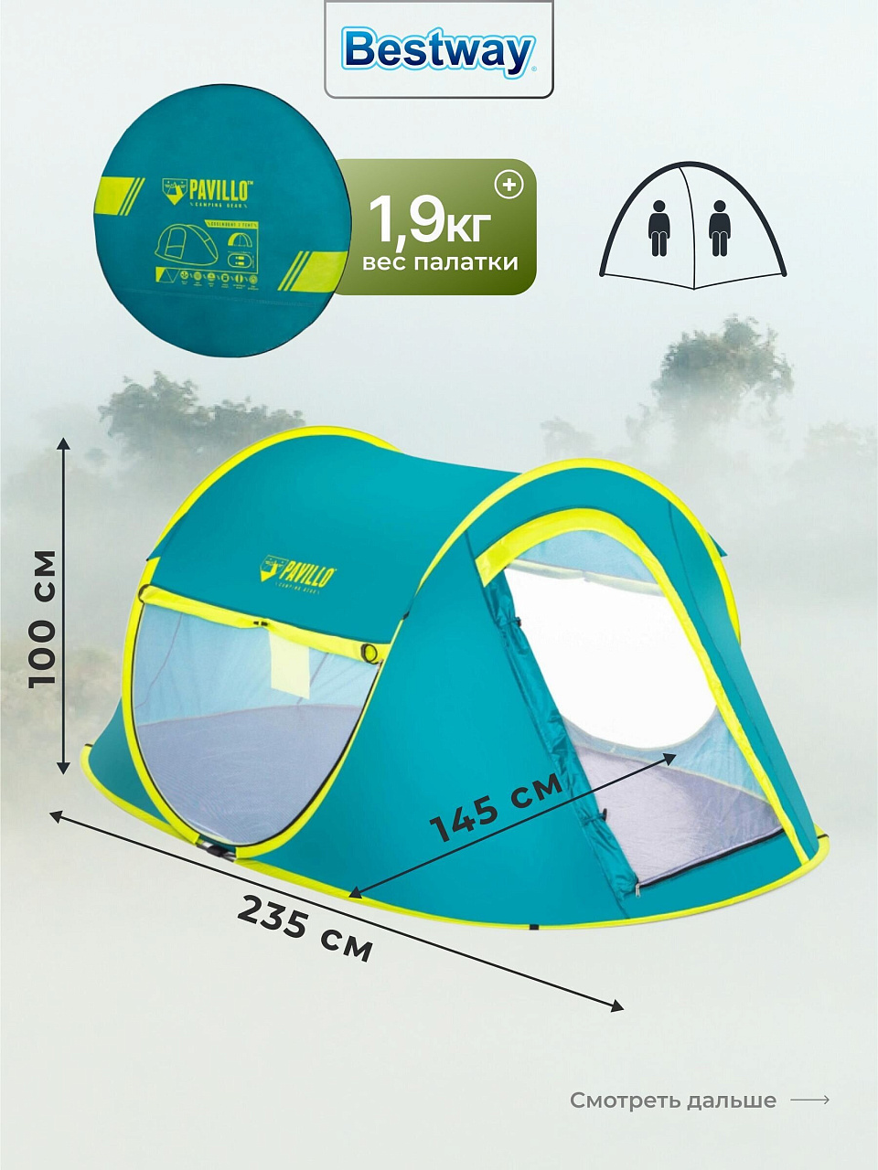 Вы можете приобрести «Палатка 2-местная, 235х145х100 см, 1 слой, 1 комн, с москитной сеткой, Bestway, Coolmount 2, 68086BW» и другие товары в нашем интернет-магазине в Обнинске по низким ценам и с бесплатным самовывозом.
