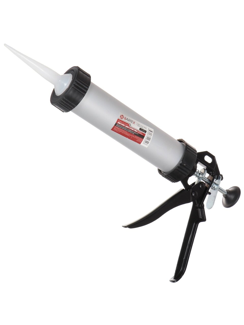 Пистолет для герметика – это инструмент, который обязательно пригодится Вам в строительстве, для ремонта квартиры или автомобиля, при склеивании поврежденных предметов. Казалось бы, достаточно приобрести стандартный тюбик с герметиком, и пистолет Вам не нужен. Однако с помощью модели Bartex Yl150044 Вы сможете израсходовать содержимое тубы полностью и не допустить контакта рук с вязким составом. Инструмент имеет закрытый цилиндрический корпус, выполненный из алюминия.