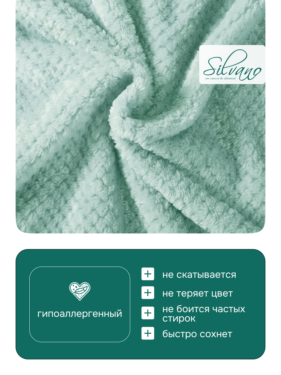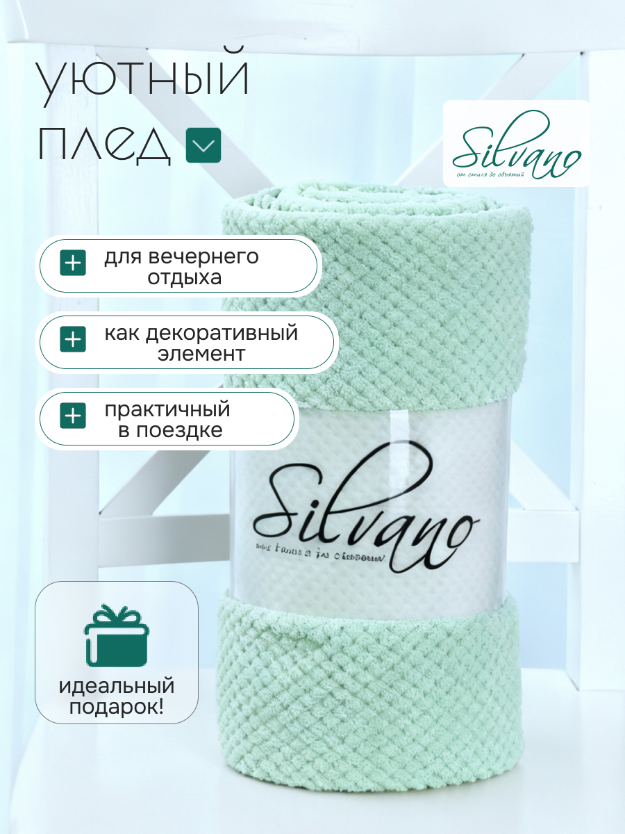 Плед 1.5-спальный 150х200 см Silvano Popcorn — уютное решение для спальни и гостиной: мягкий велсофт, модный мятный цвет, долговечность и лёгкий уход.