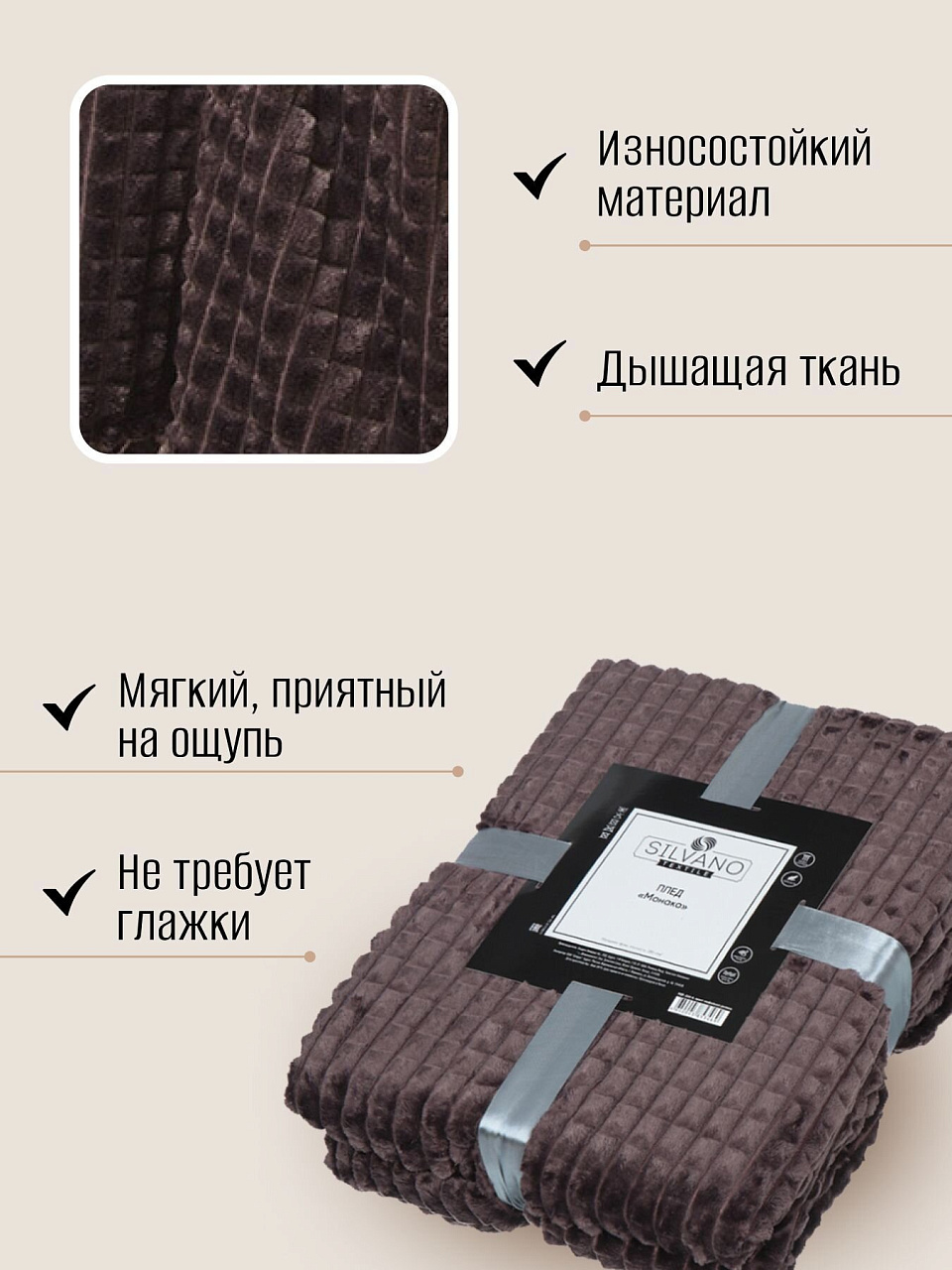 Если вы ищете, какой плед выбрать для спальни или гостиной, обратите внимание на этот вариант: кофейный цвет легко впишется в любой интерьер, а большой размер подойдёт как взрослым, так и подросткам. В отличие от аналогичных изделий из хлопка или шерсти, велсофт не вызывает аллергию, быстро сохнет и не линяет после стирки. Плед не стеганый, без отделки, что делает его максимально универсальным для разных сценариев использования: укрыться вечером на даче, взять с собой в поездку или подарить близким.