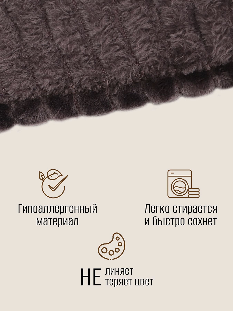 Плед из 100% полиэстера выдерживает машинную стирку при 30–40 градусах, быстро сохнет, не теряет форму и цвет, не требует глажки.