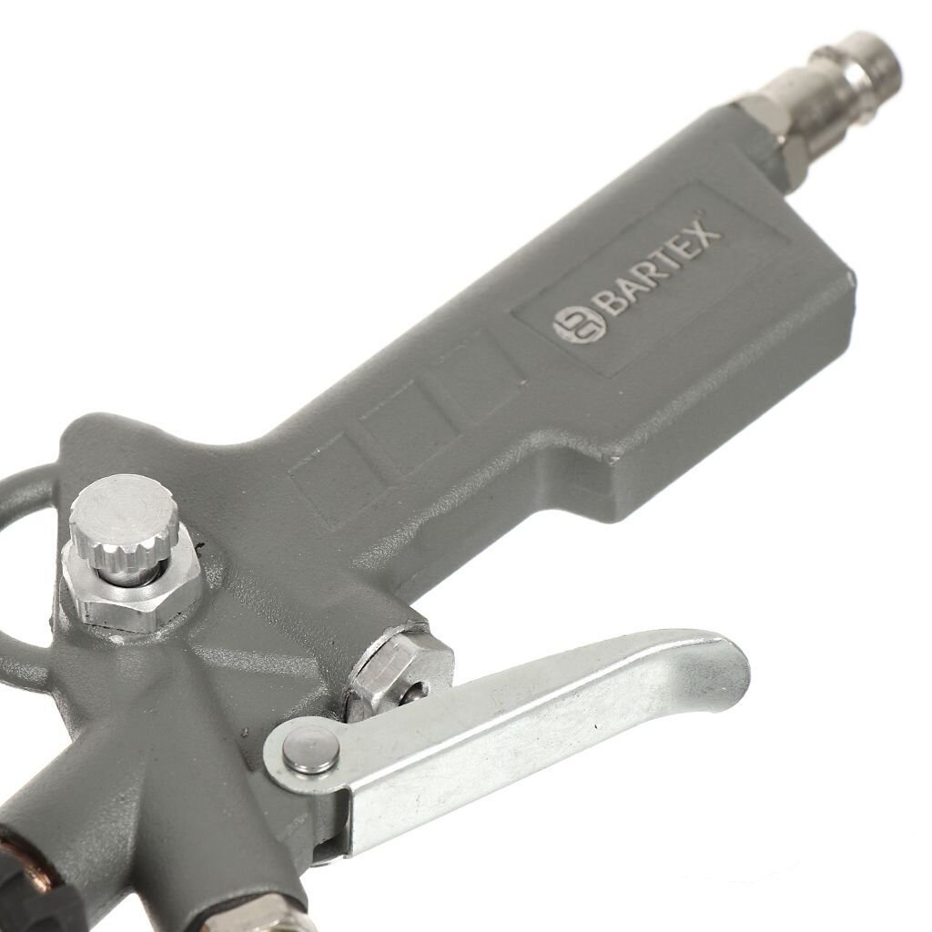 Пневмопистолет Bartex – это простой и удобный инструмент, с которым без труда справится даже начинающий мастер. Быстросъемное соединение позволит Вам сократить время подключения пневмопистолета к компрессору, что особенно важно в случае непредвиденных ситуаций на дороге в холодное время года.