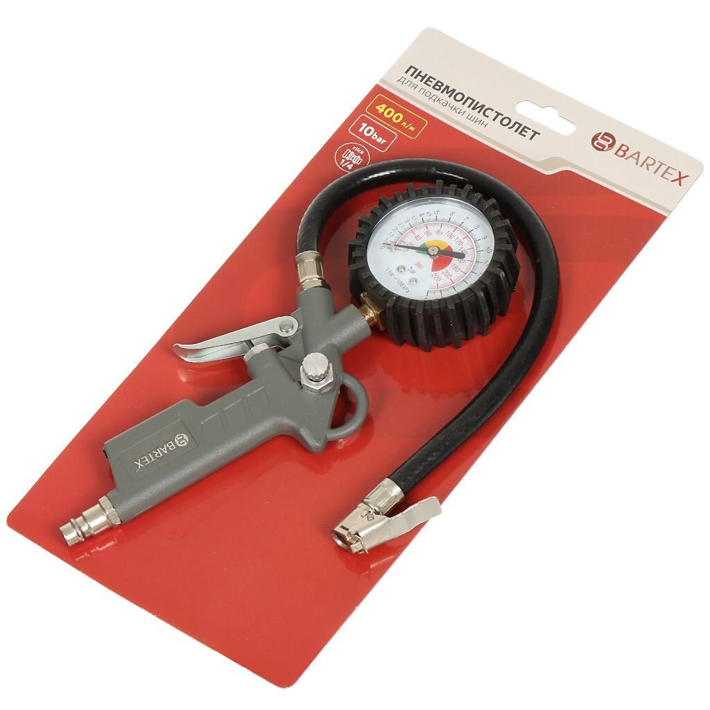 Универсальный пневматический пистолет отлично подходит не только для накачки шин, но и для контроля давления в них. Пневмопистолет Bartex позволяет быстро и без затрат физических усилий восстановить желаемые показания.