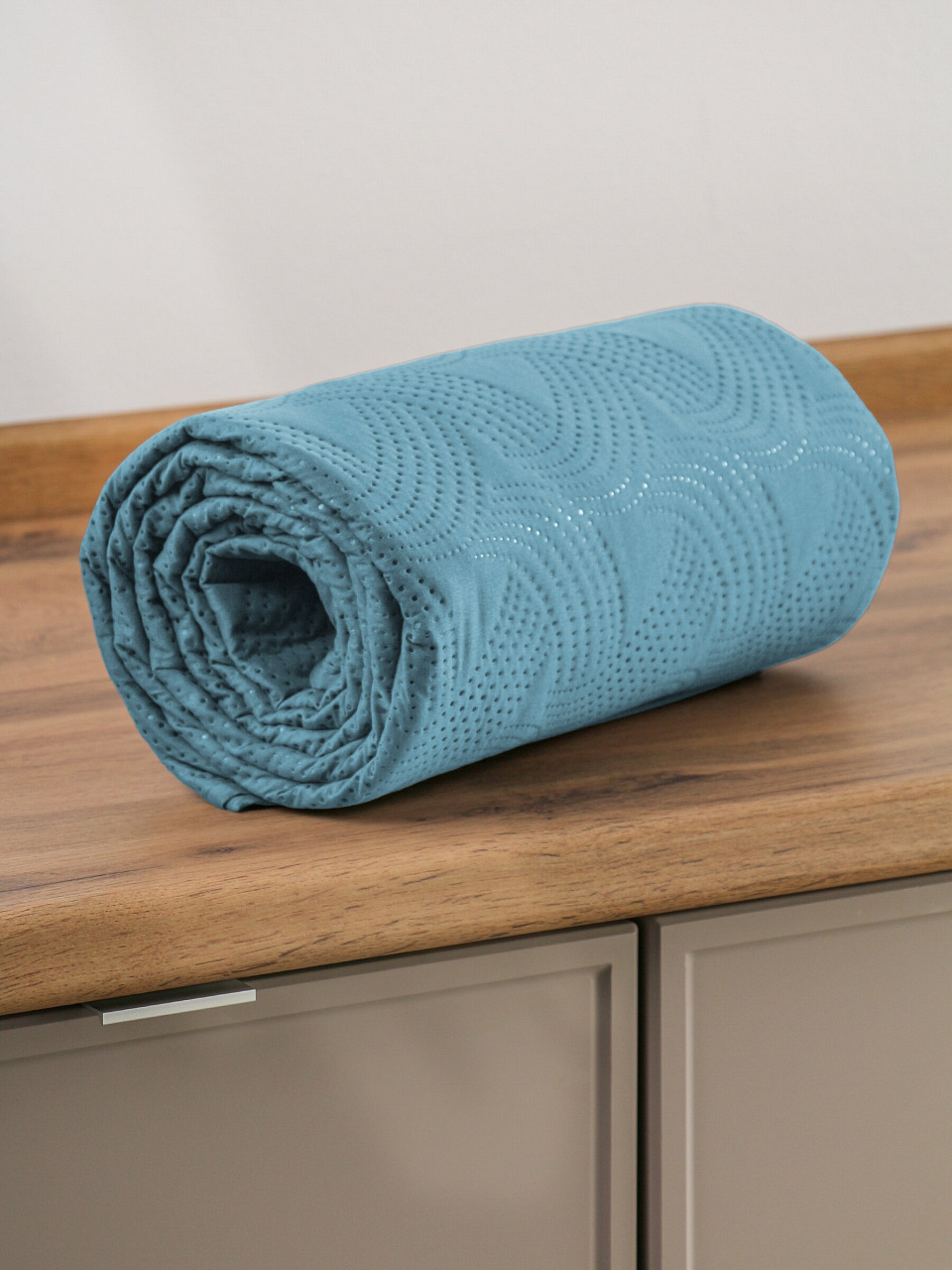 - Практичность и компактность. Гораздо проще сворачивать и в сложенном виде занимает меньше места, чем покрывала с гладкой поверхностью.