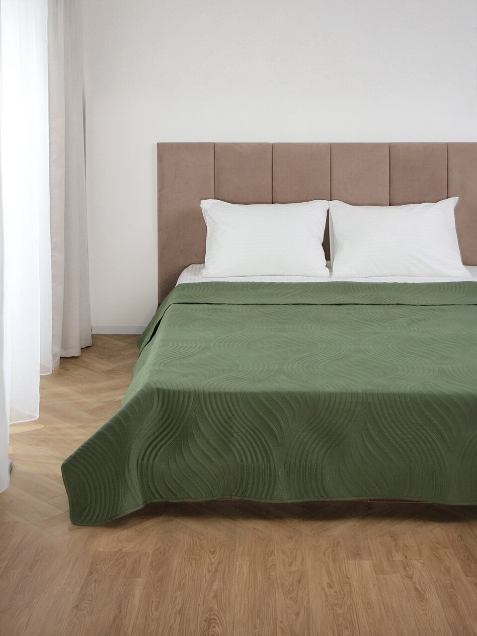 Размер 200х220 см (евро), цвет — темно-зеленый, дизайн минималистичный, однотонный с узором, подходит для современных интерьеров.