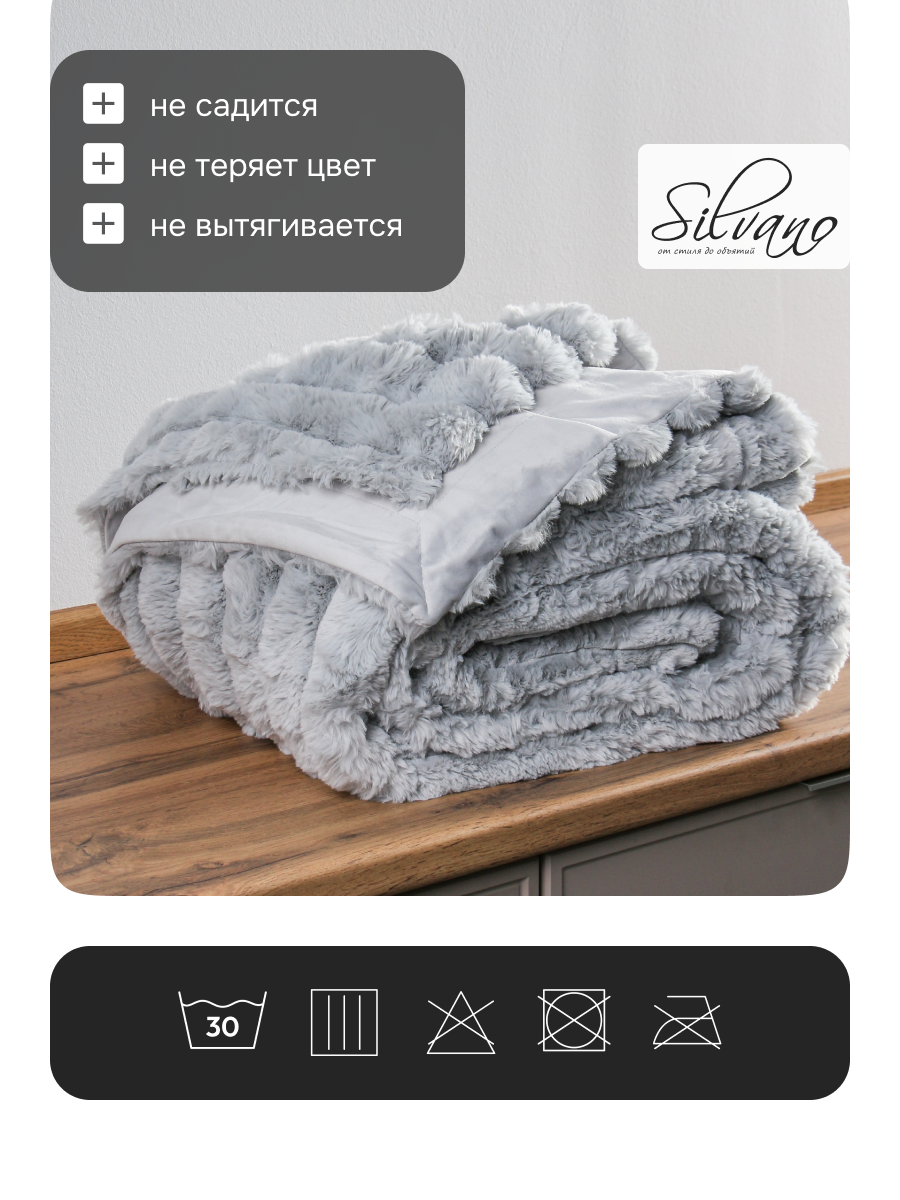 - Уникальная мягкость и пушистость — покрывало с фактурой «кролик» для максимального комфорта и уюта.