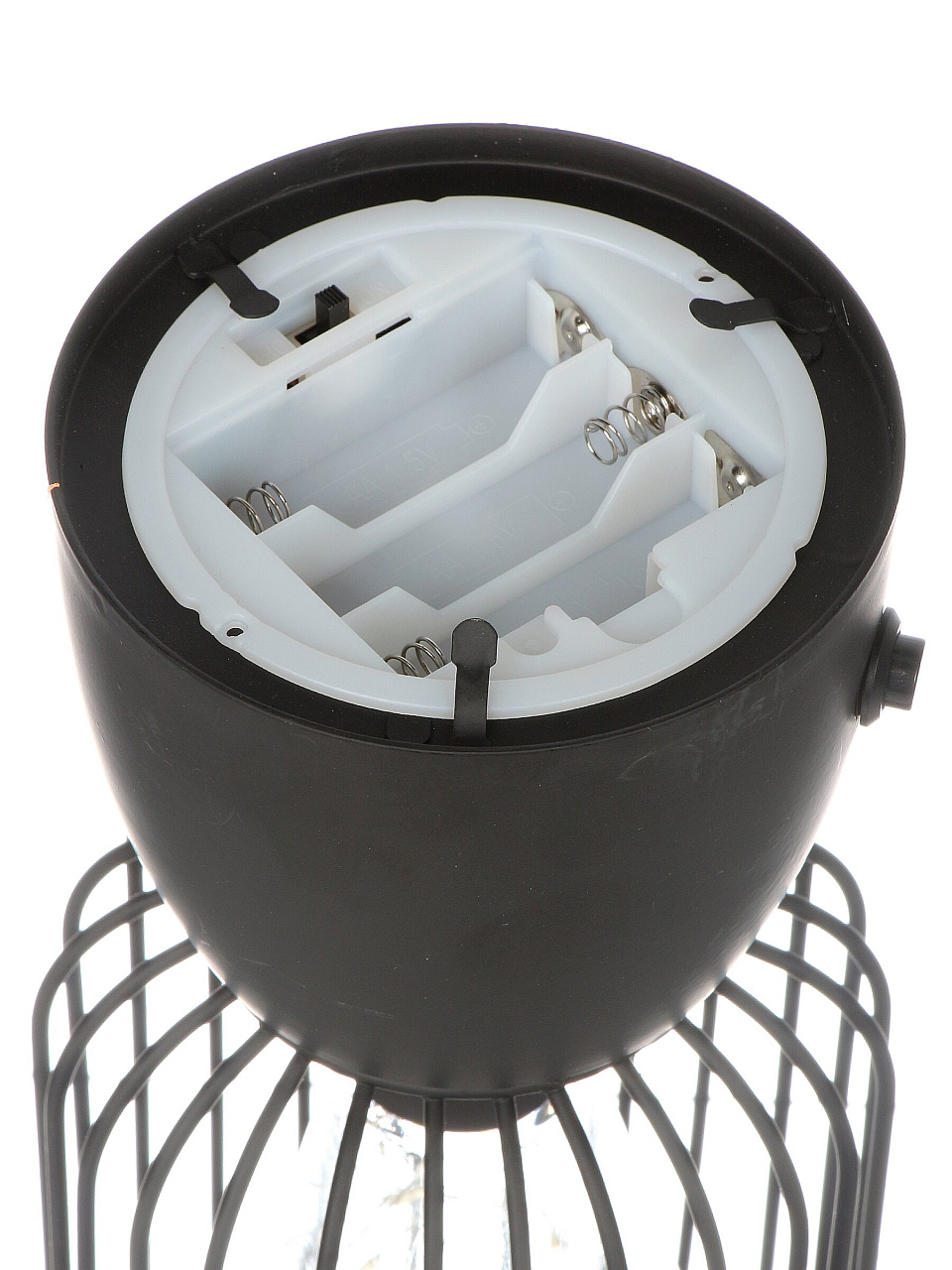 Фонарь работает на батарейках, что обеспечивает автономность и удобство размещения в любом месте без розеток.