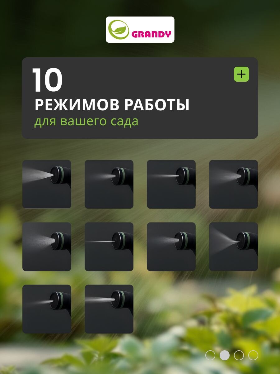 Пистолет для полива Grandy JS-9322 — идеальный выбор для ухода за газоном и огородом. Удобный быстросъемный механизм обеспечивает легкое подключение, а 10 режимов позволяют подобрать оптимальный вариант полива для любых растений. Прочный ABS-пластик гарантирует долговечность. Экономия времени и воды, простота использования и надежность — основные преимущества этого инструмента.