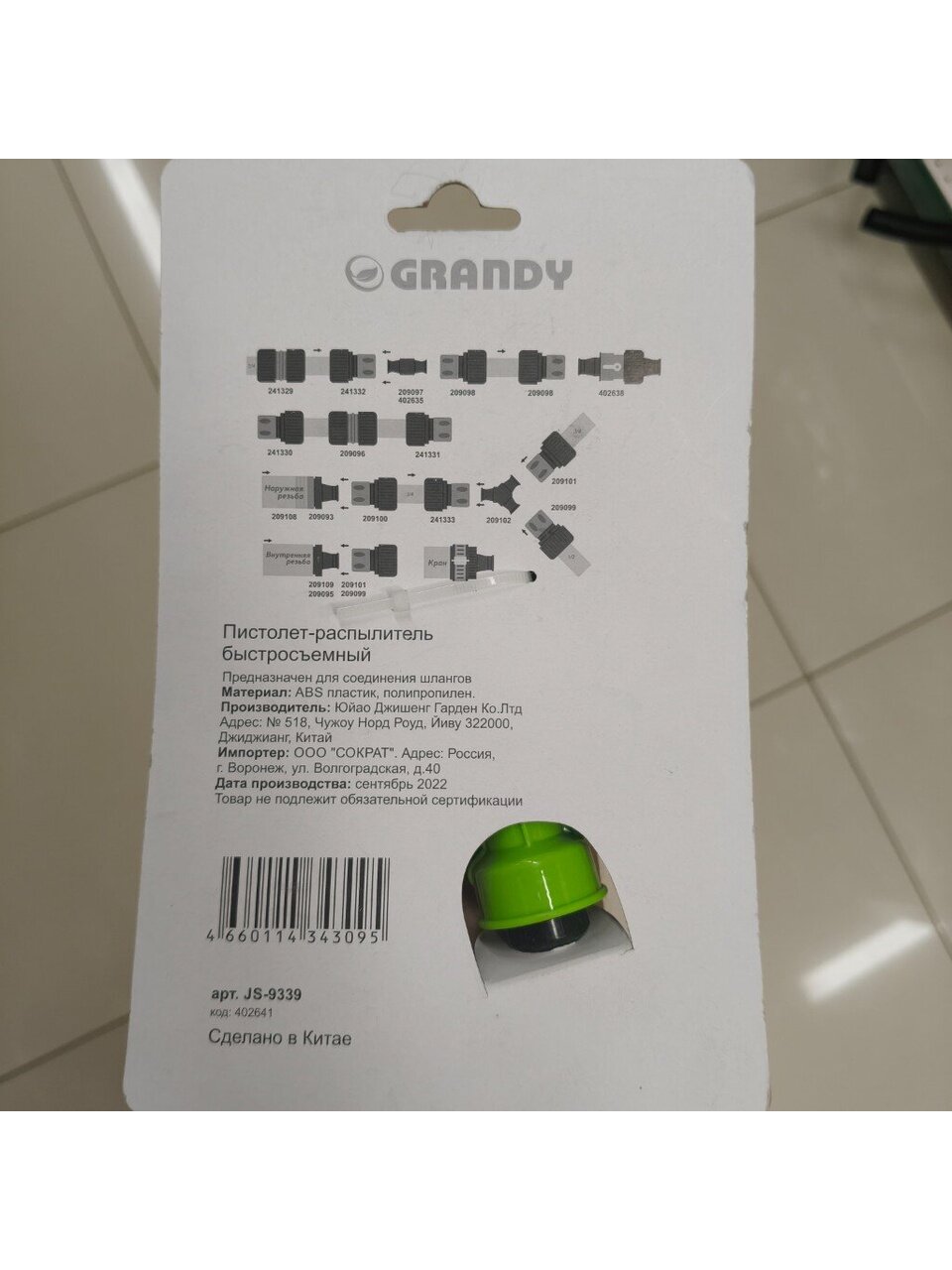 Вы можете приобрести «Пистолет для полива быстросъемный, Grandy, JS-9339» и другие товары в нашем интернет-магазине в Санкт-Петербургe по низким ценам и с бесплатным самовывозом.
