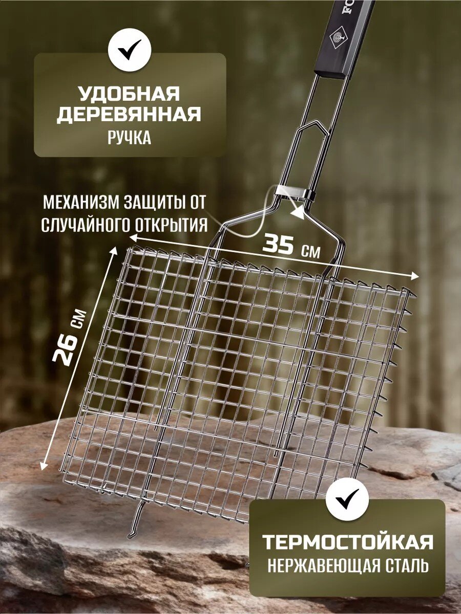 Решетка для барбекю Forester легкая и компактная. Ее удобно брать с собой на пикник или в поход.