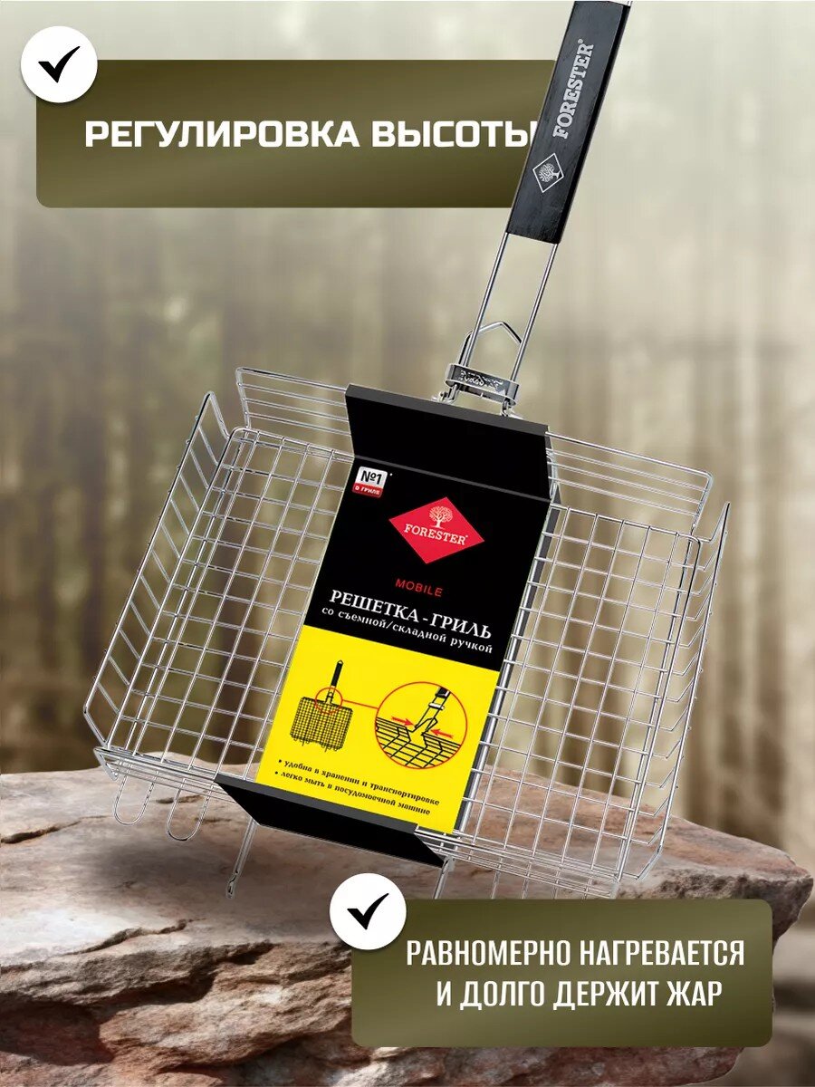Решетка для барбекю Forester легкая и компактная. Ее удобно брать с собой на пикник или в поход.