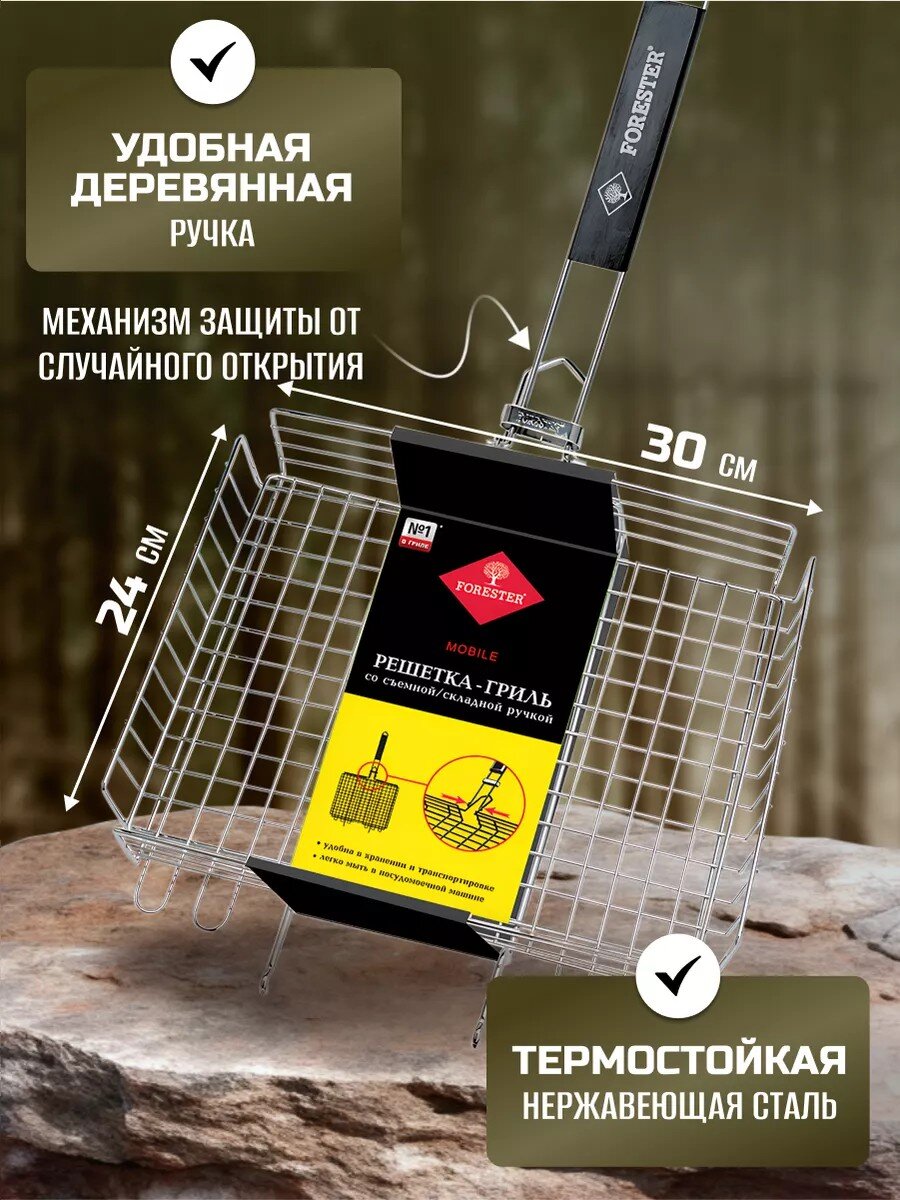 Вы можете приобрести «Решетка барбекю 300х240 мм, Forester, Mobile, сталь, рукоятка дерево, с коррозионностойким покрытием, BQ-S03M» и другие товары в нашем интернет-магазине в Ярославле по низким ценам и с бесплатным самовывозом.