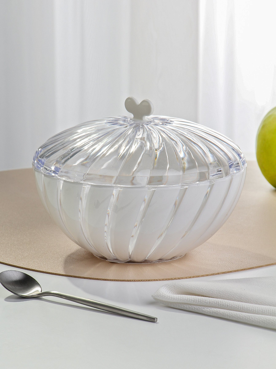 Данное изделие станет незаменимой посудой на кухне. Удобное хранение сахара как сыпучего, так и рафинад. Крышка герметична, в соответствии защищает от попадания посторонних веществ и не способствует впитыванию запахов. С данной посудой сервировка стола превратятся в настоящий праздник.