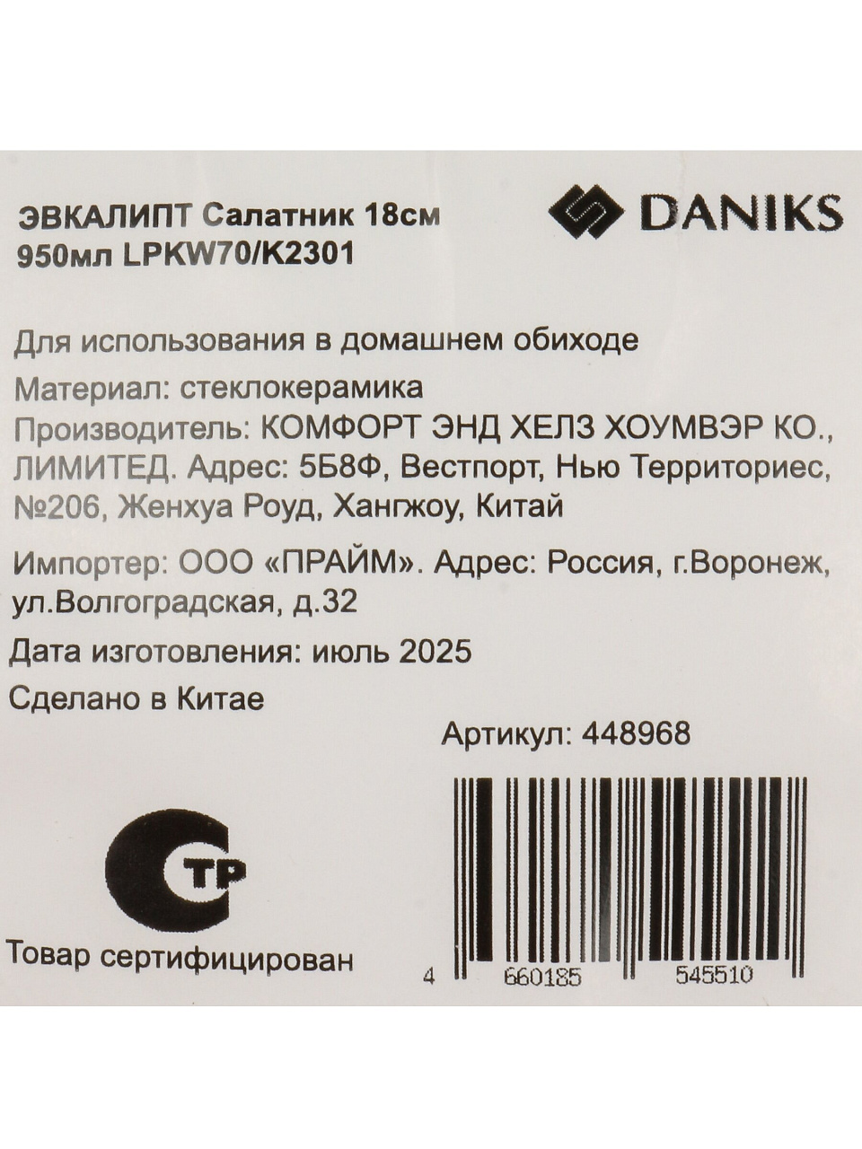 Оцените преимущества стеклокерамического салатника Daniks — выгодное соотношение цены и качества, быстрая доставка и гарантия оригинальности товара. Закажите сейчас и получите стильный акцент для вашей кухни или отличный подарок для близких.