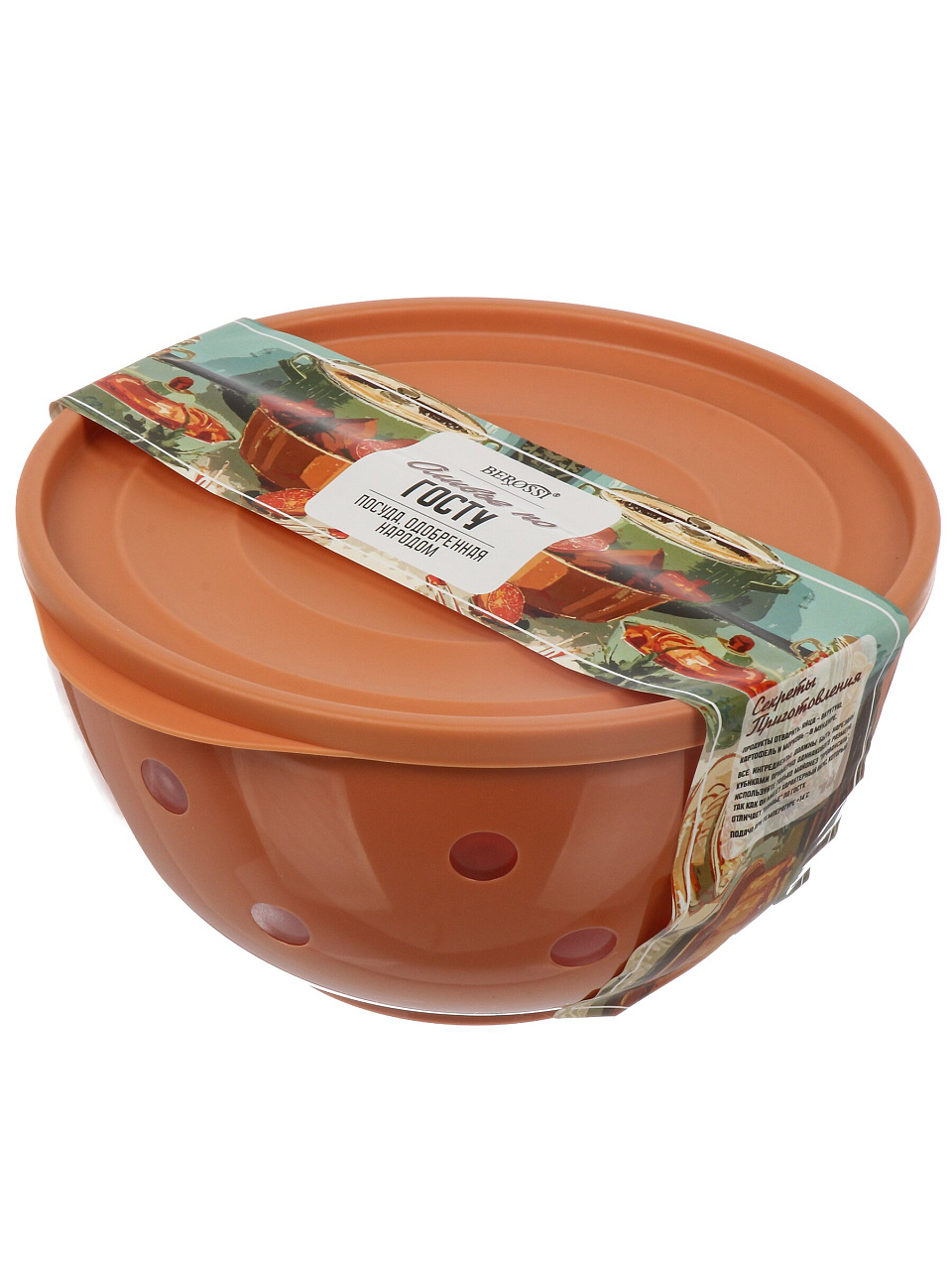 Салатник пластиковый Berossi 2 л с крышкой — идеальный выбор для хранения и сервировки салатов «Оливье» по ГОСТу, удобный для дома и дачи. Прочный, современный, безопасный.