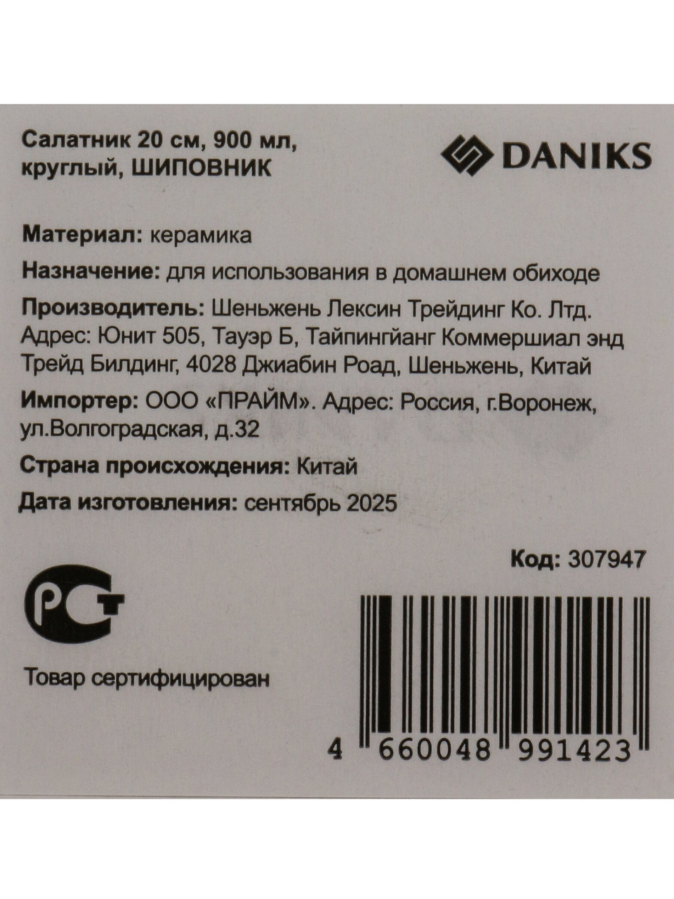 Керамический салатник Daniks из коллекции «Шиповник» — это сочетание классического стиля, экологичности и удобства. Благодаря объёму 0,9 литра и диаметру 20 см, он идеально подойдёт для подачи салатов, закусок, фруктов или десертов. Белая керамика с цветочным рисунком гармонирует с любой посудой и интерьером кухни. Если вы ищете, какой салатник выбрать для сервировки праздничного стола или повседневного использования, обратите внимание на этот вариант: он устойчив к царапинам и не впитывает запахи.