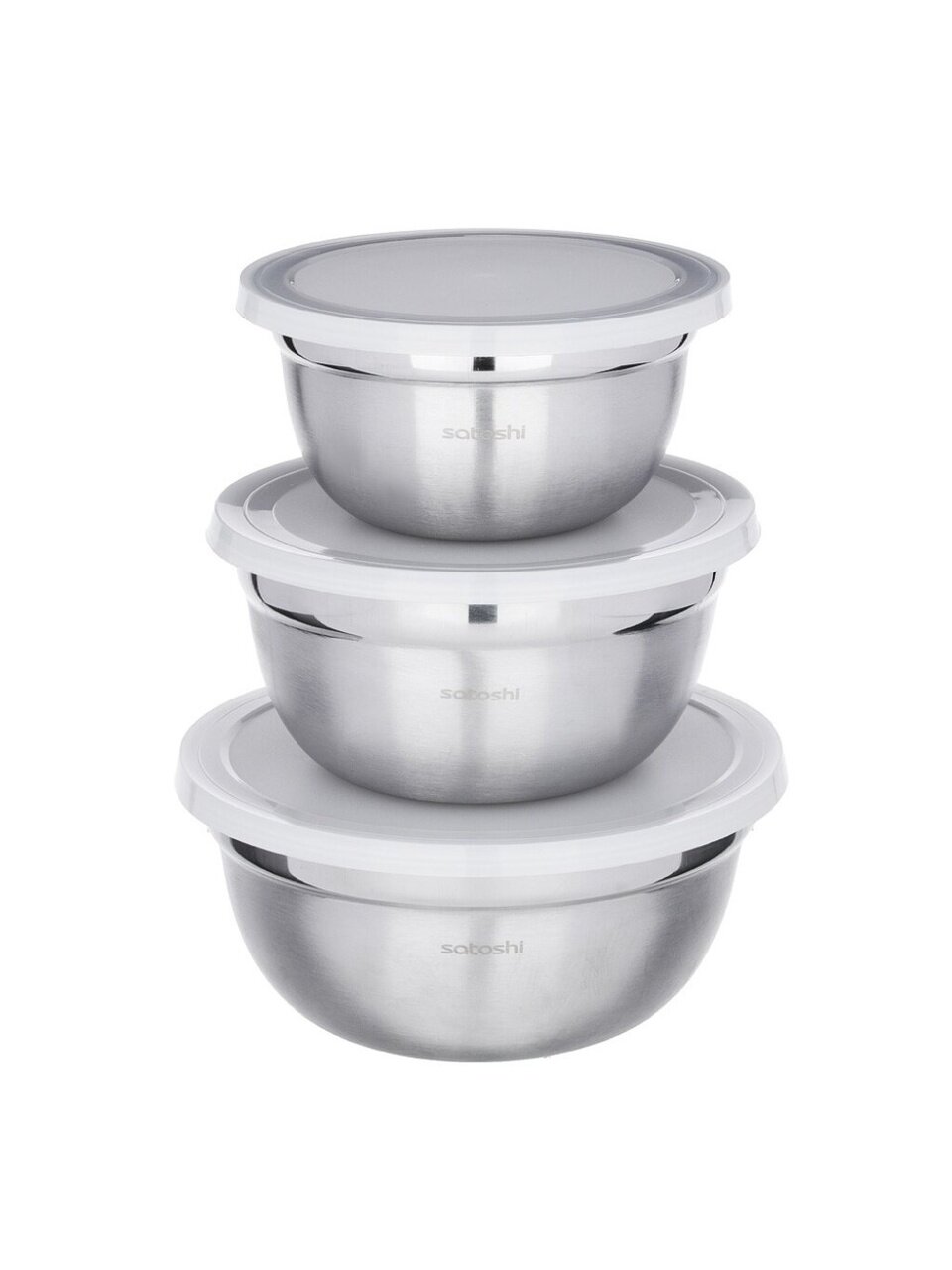 Салатник сталь, круглый, 3 шт, 14, 16, 18 см, с крышкой, Satoshi, 812-080