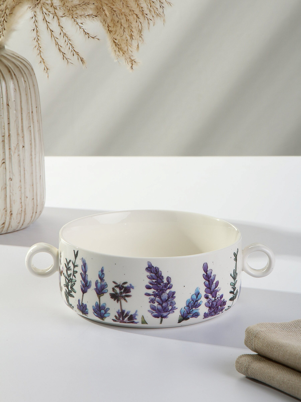 Салатник фарфор с ручками 16 см Bronco Лаванда — стильный выбор для сервировки, подарка и ежедневного использования. Прочный фарфор, изысканный дизайн, подходит для СВЧ и посудомоечной машины.