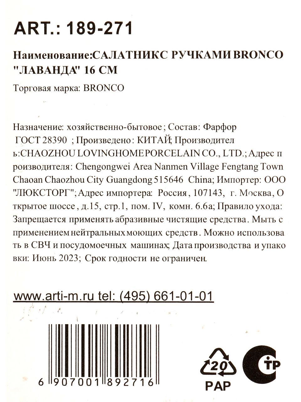 Вы можете приобрести «Салатник фарфор, круглый, 16 см, с ручками, Лаванда, Bronco, 189-271» и другие товары в нашем интернет-магазине в Борисоглебске по низким ценам и с бесплатным самовывозом.