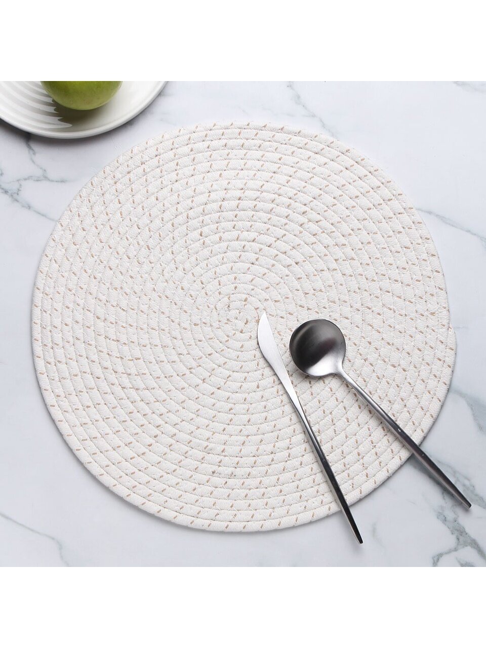 - Оптимальный диаметр 38 см — подходит для больших и маленьких столов, круглая форма для универсальной сервировки.