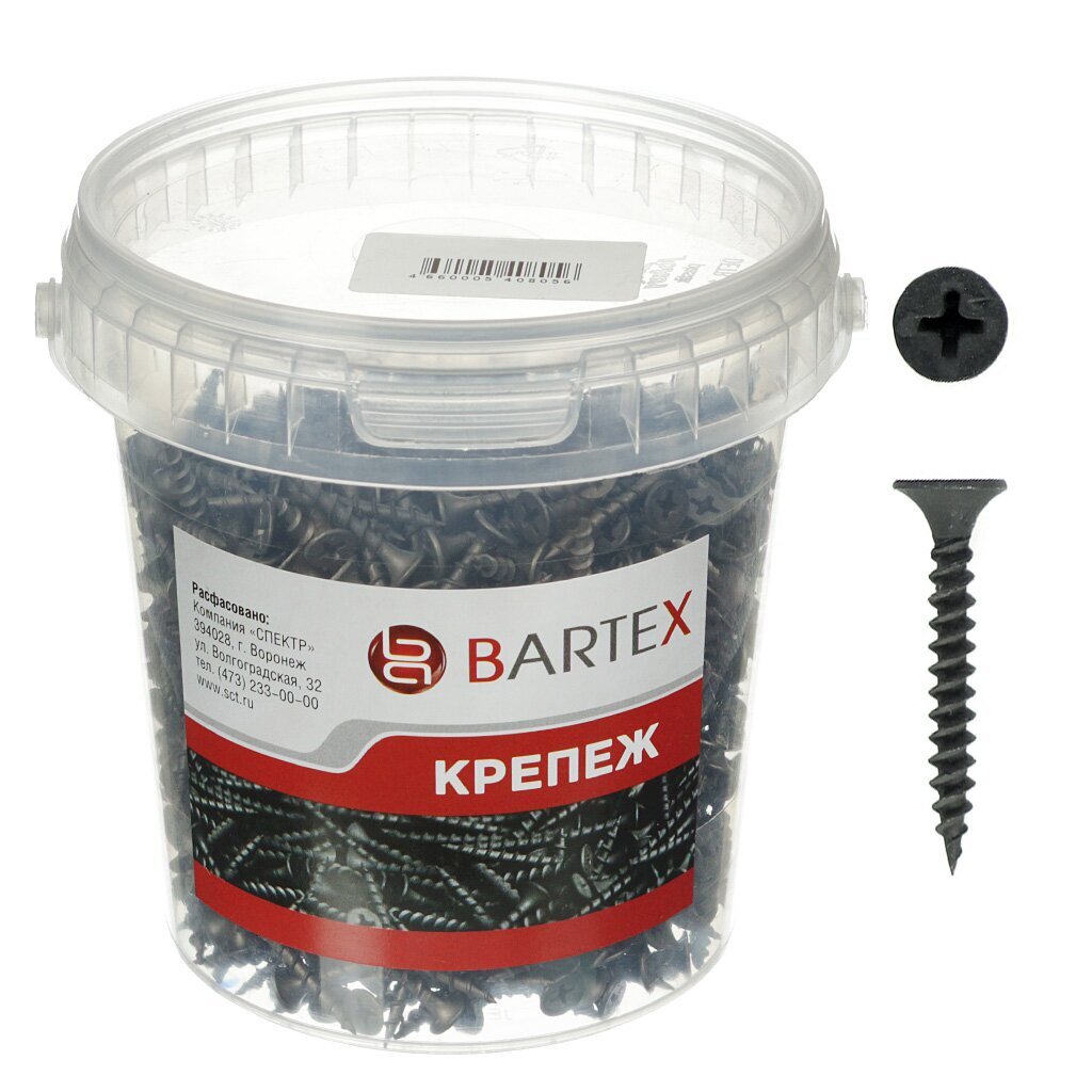 Саморезы Bartex предназначены для крепления гипсокартонных плит к металлическим каркасам. Стержень с частой резьбой обеспечивает надежное сцепление. Благодаря потайной головке изделие не выступает над поверхностью. Крестообразный шлиц позволяет проводить работу отверткой или шуруповертом. При работе с тонким металлом монтаж может производиться без сверления, в остальных случаях требуется предварительно высверлить отверстие.